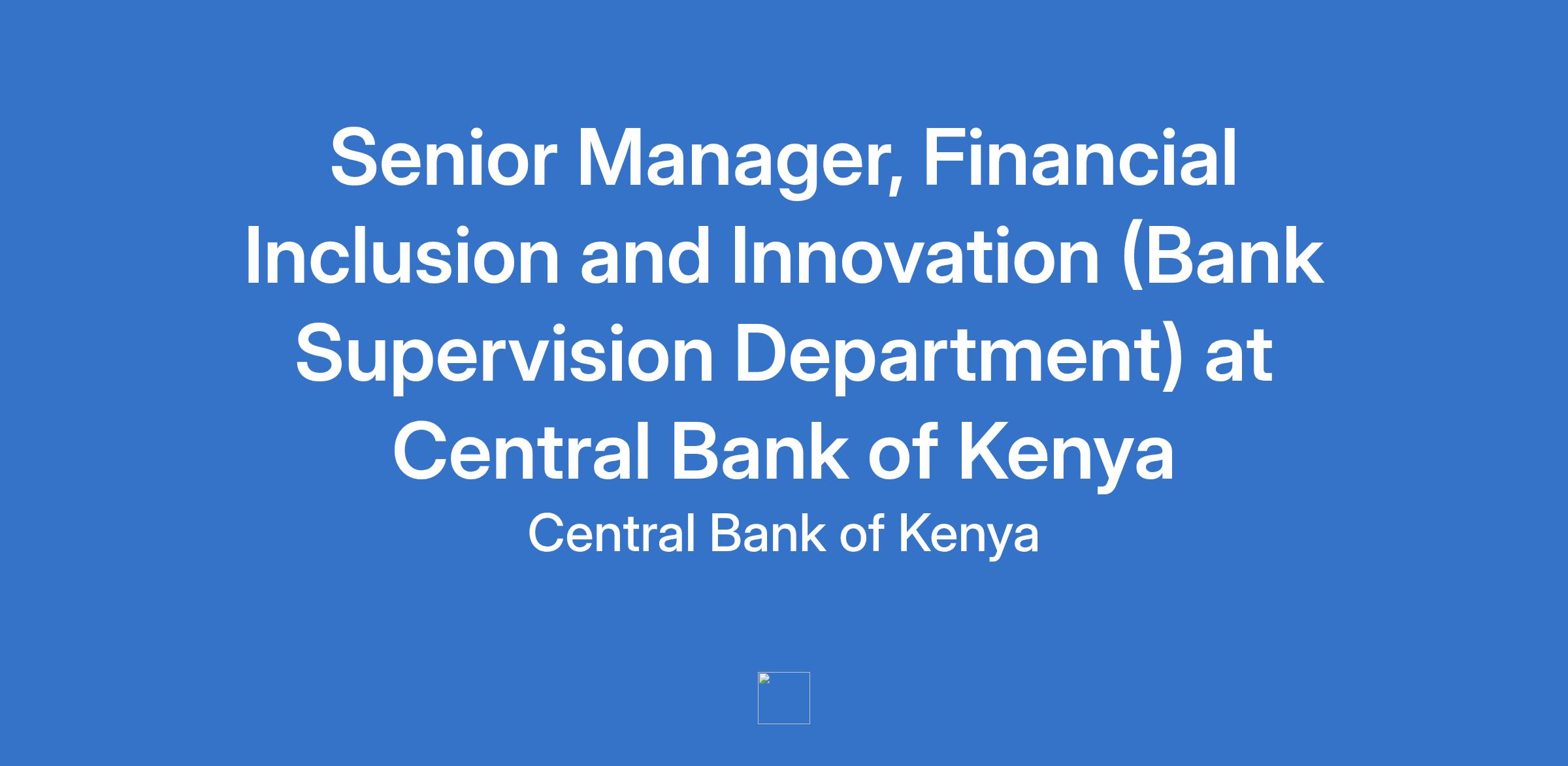 Senior Manager, Financial Inclusion and Innovation (Bank Supervision Department) at Central Bank of Kenya