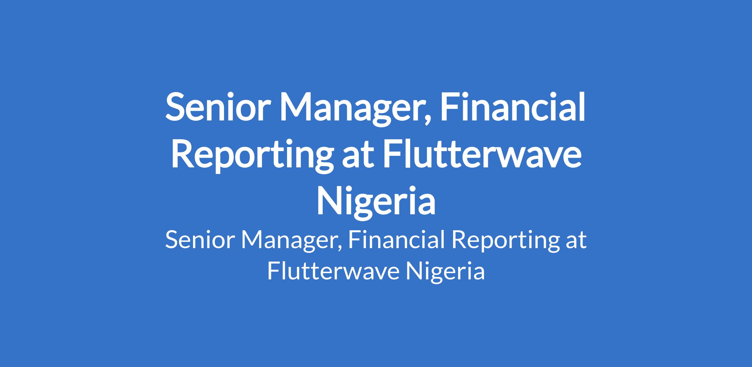 Flutterwave is recruiting to fill the position of: Senior Manager, Financial Reporting. The position is located in Lekki, Lagos State. Interested candidates should possess a Bachelors Degree in Accounting, Finance, or related field with 1012 years of experience in financial reporting, with at least 3 years in a managerial capacity; Professional qualification: ACA / ACCA / CPA (required).