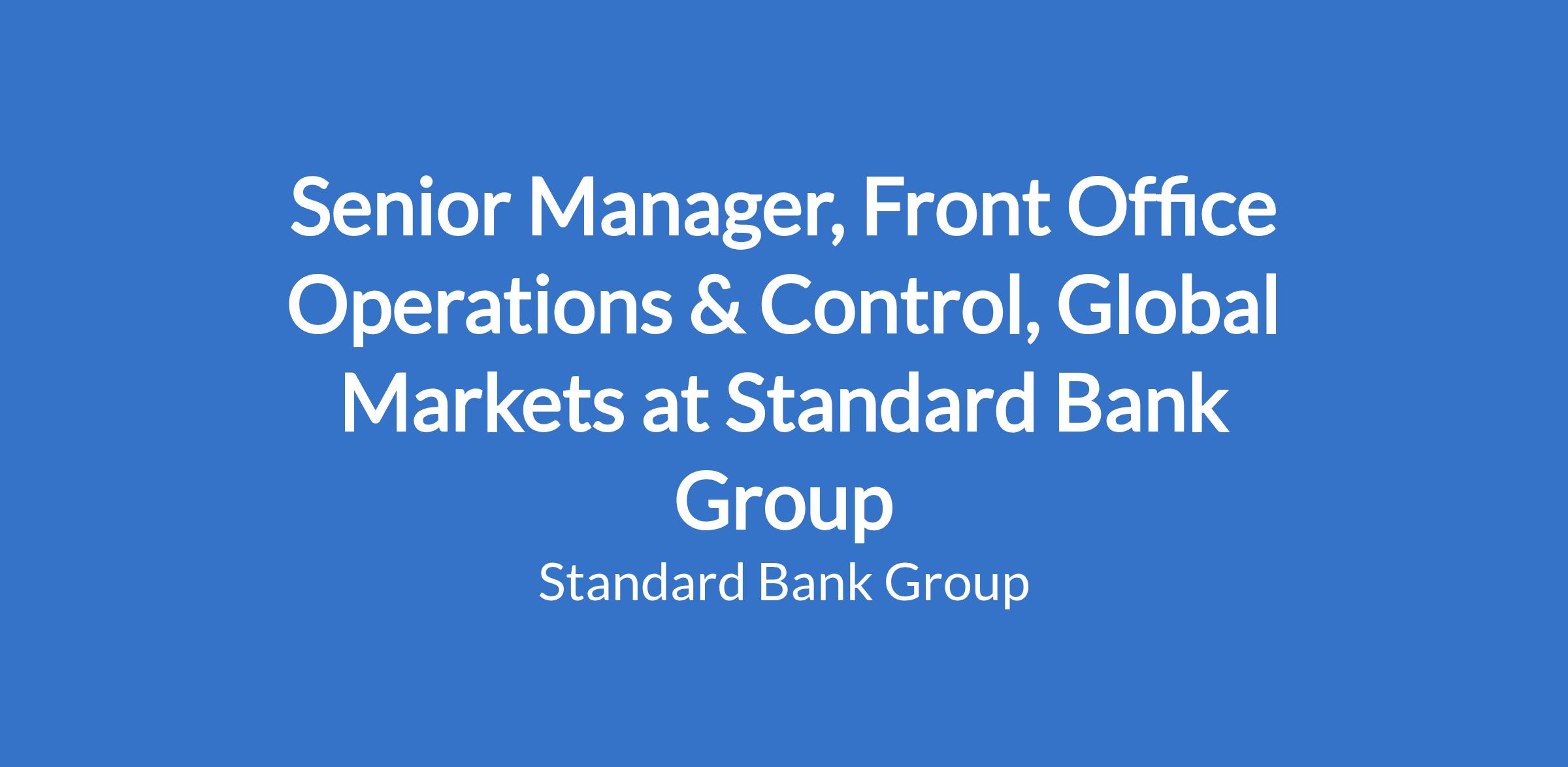 Senior Manager, Front Office Operations & Control, Global Markets at Standard Bank Group
