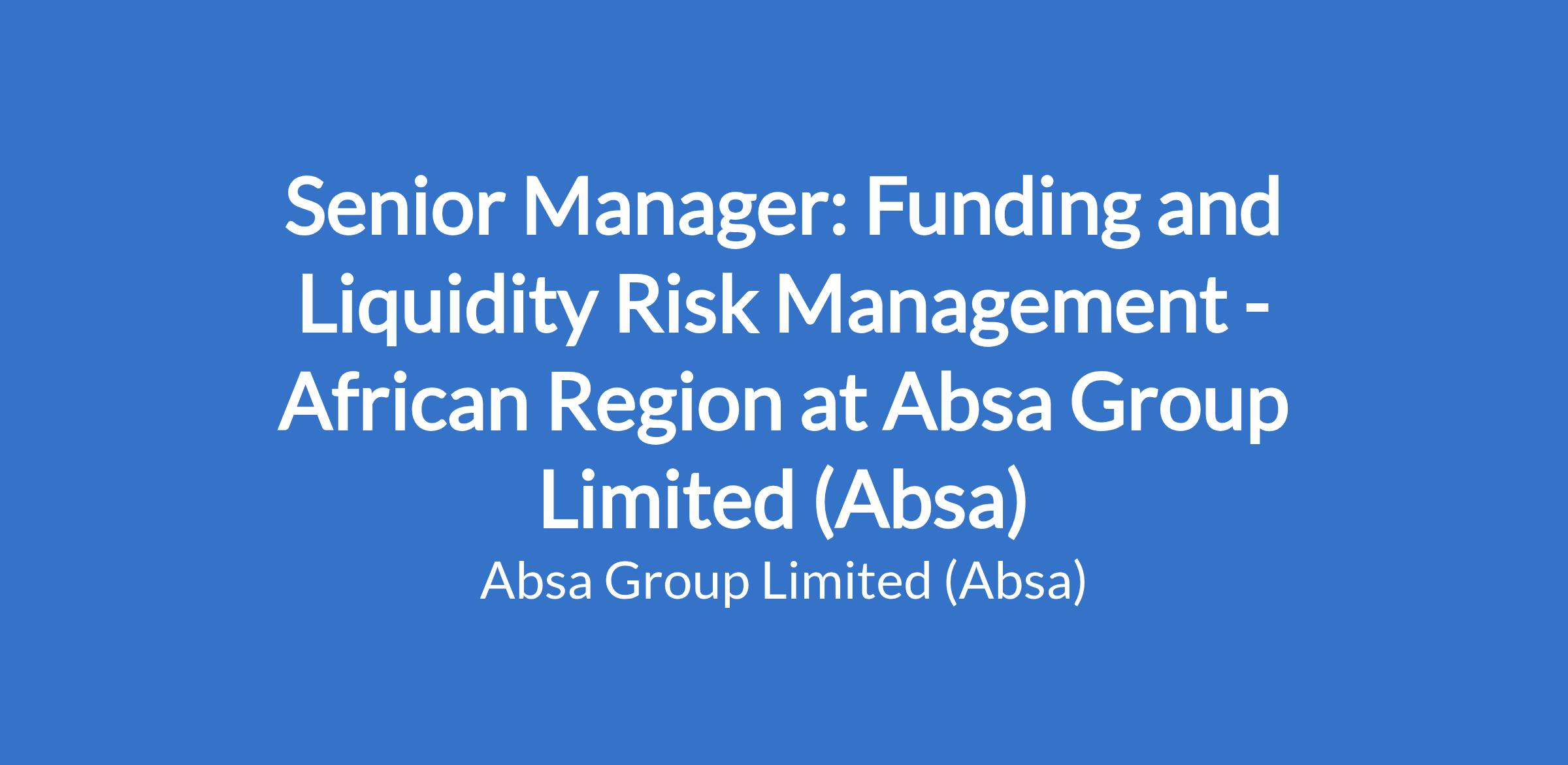 Senior Manager: Funding and Liquidity Risk Management - African Region at Absa Group Limited (Absa)