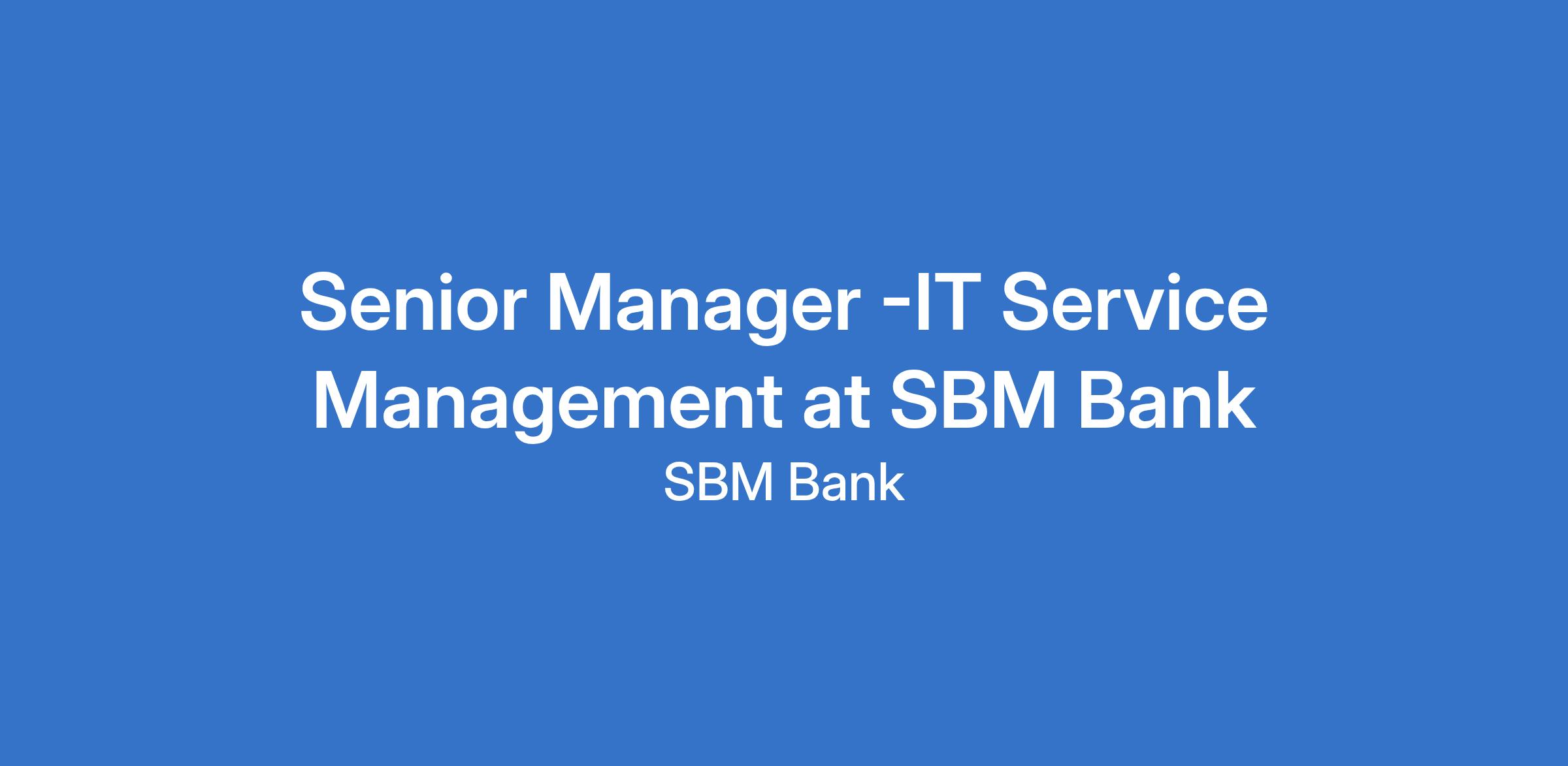 Senior Manager -IT Service Management at SBM Bank