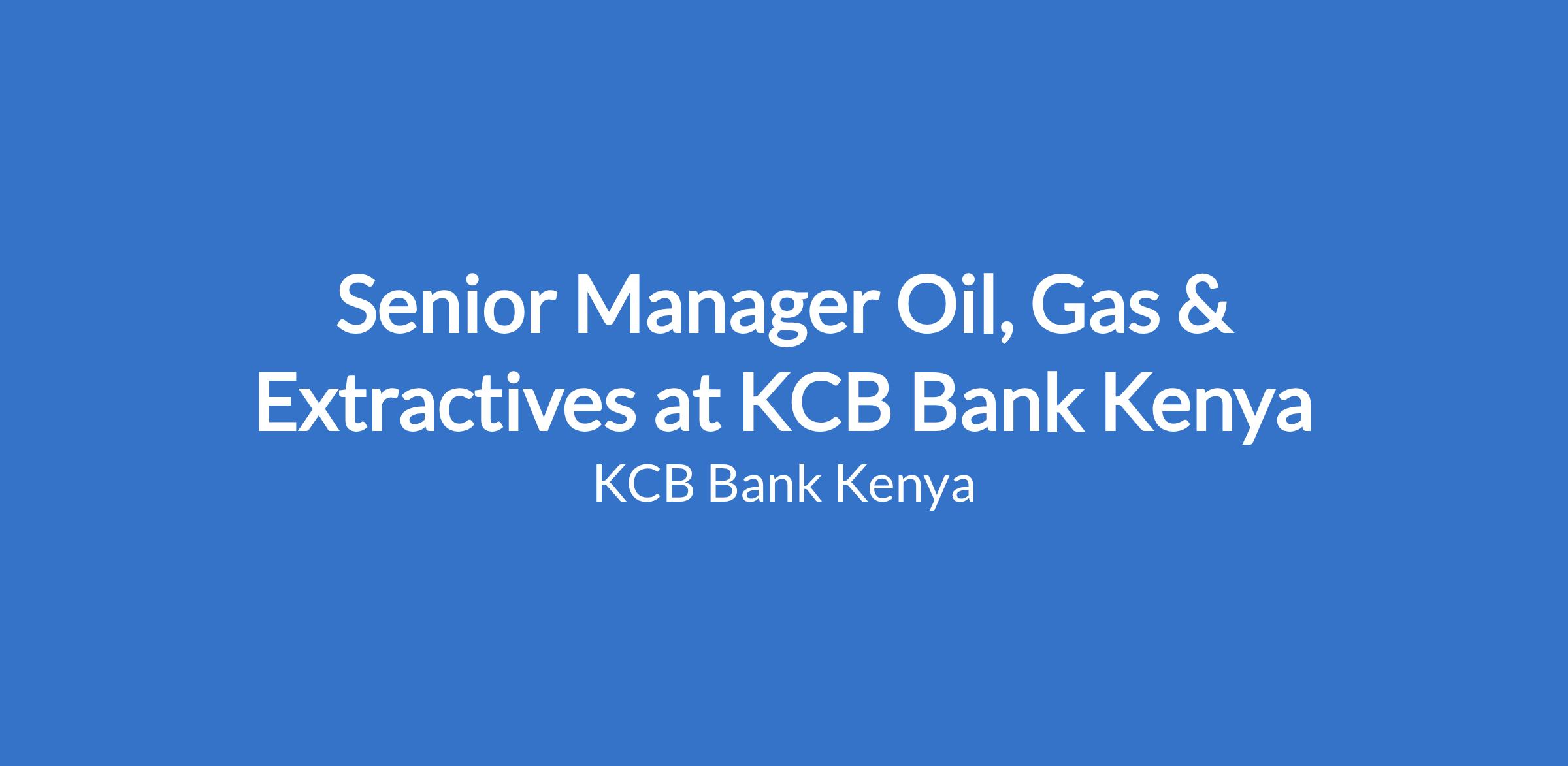 Senior Manager Oil, Gas & Extractives at KCB Bank Kenya