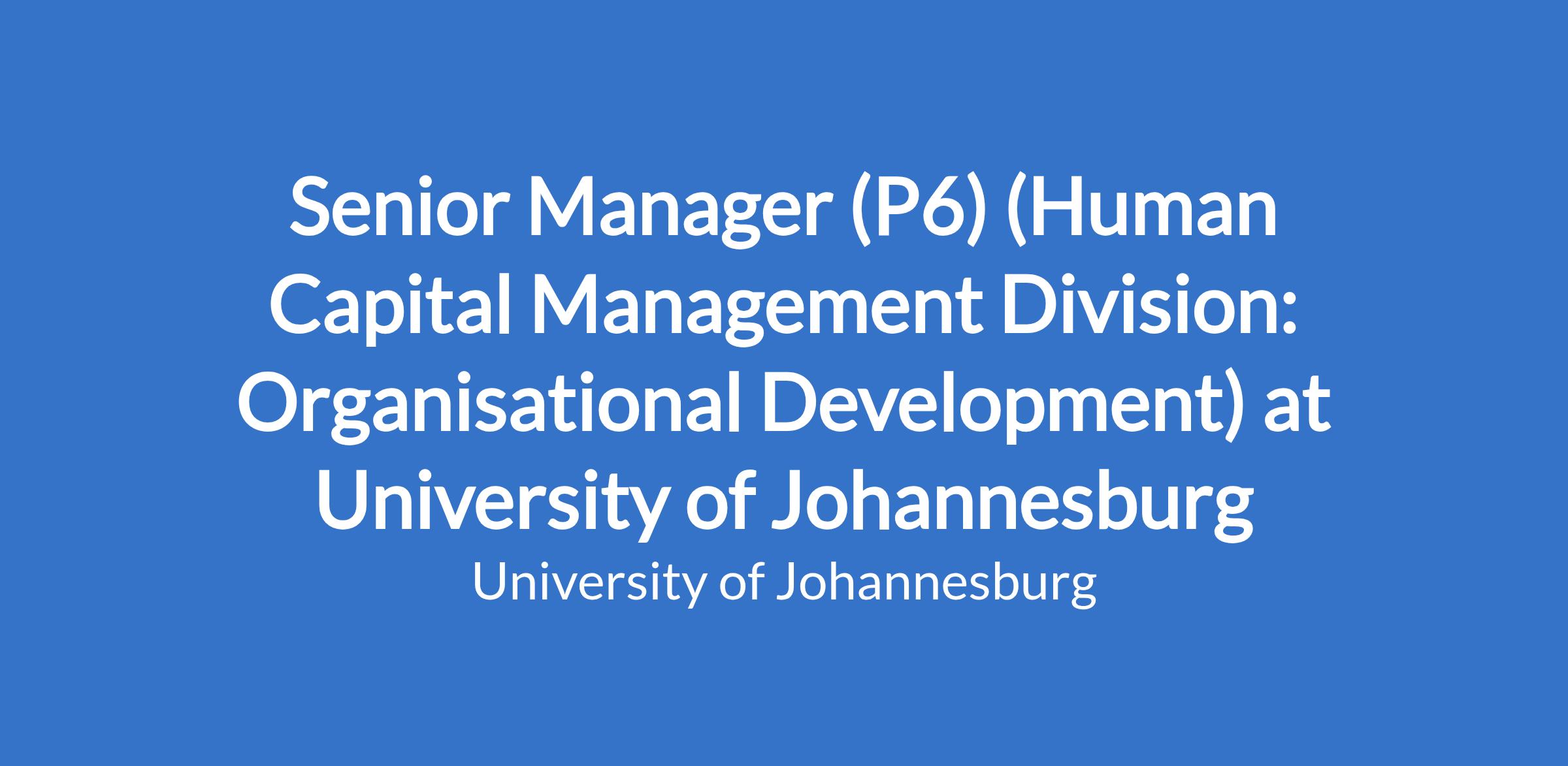 Senior Manager (P6) (Human Capital Management Division: Organisational Development) at University of Johannesburg