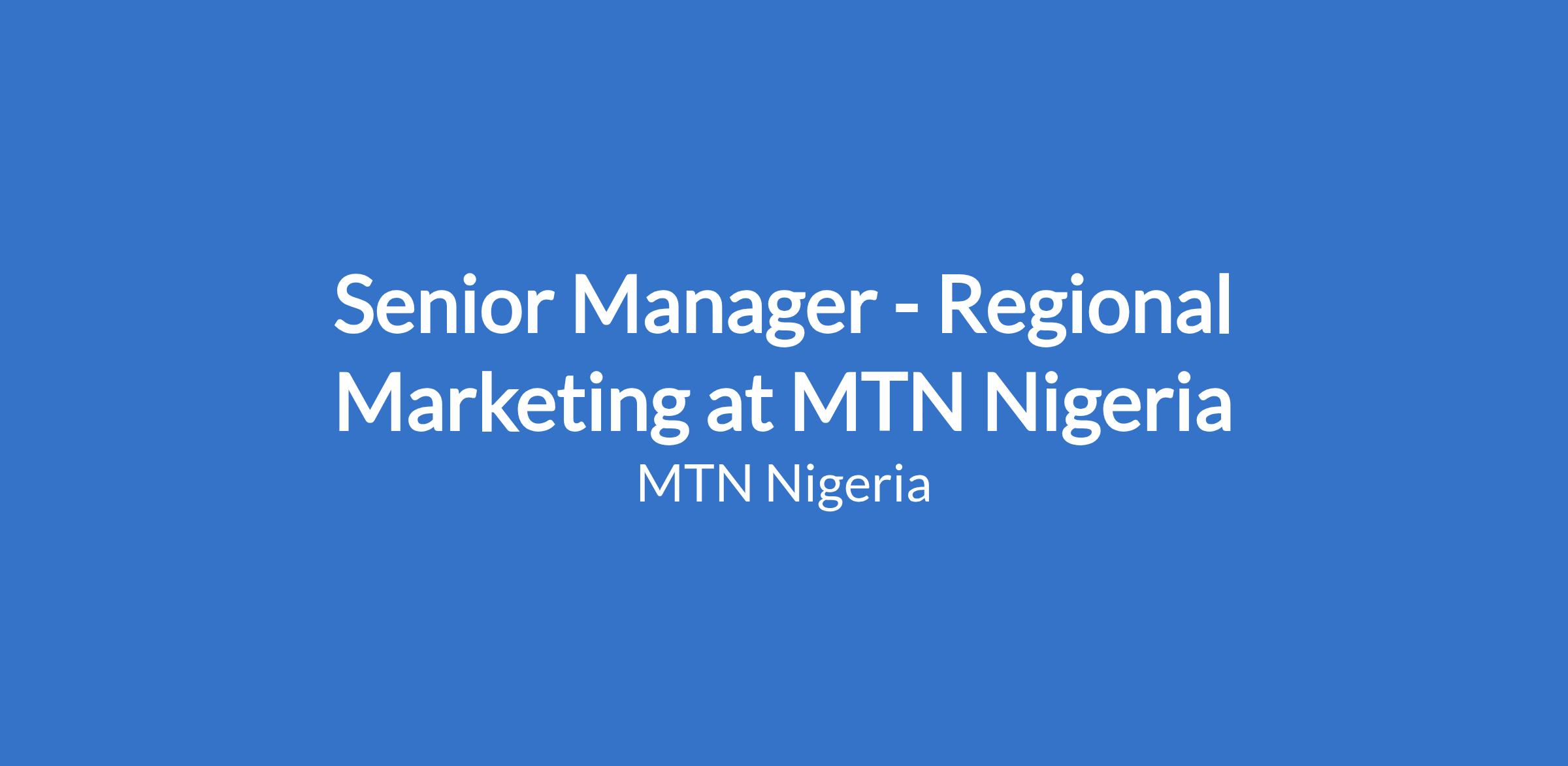 Senior Manager - Regional Marketing at MTN Nigeria