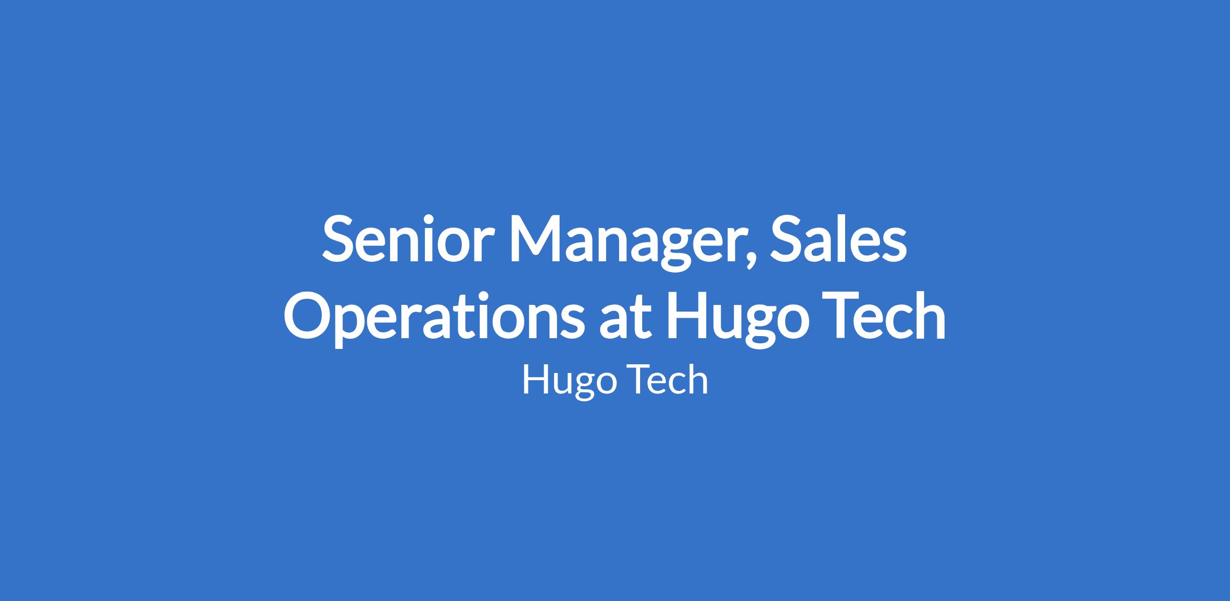 Senior Manager, Sales Operations at Hugo Tech