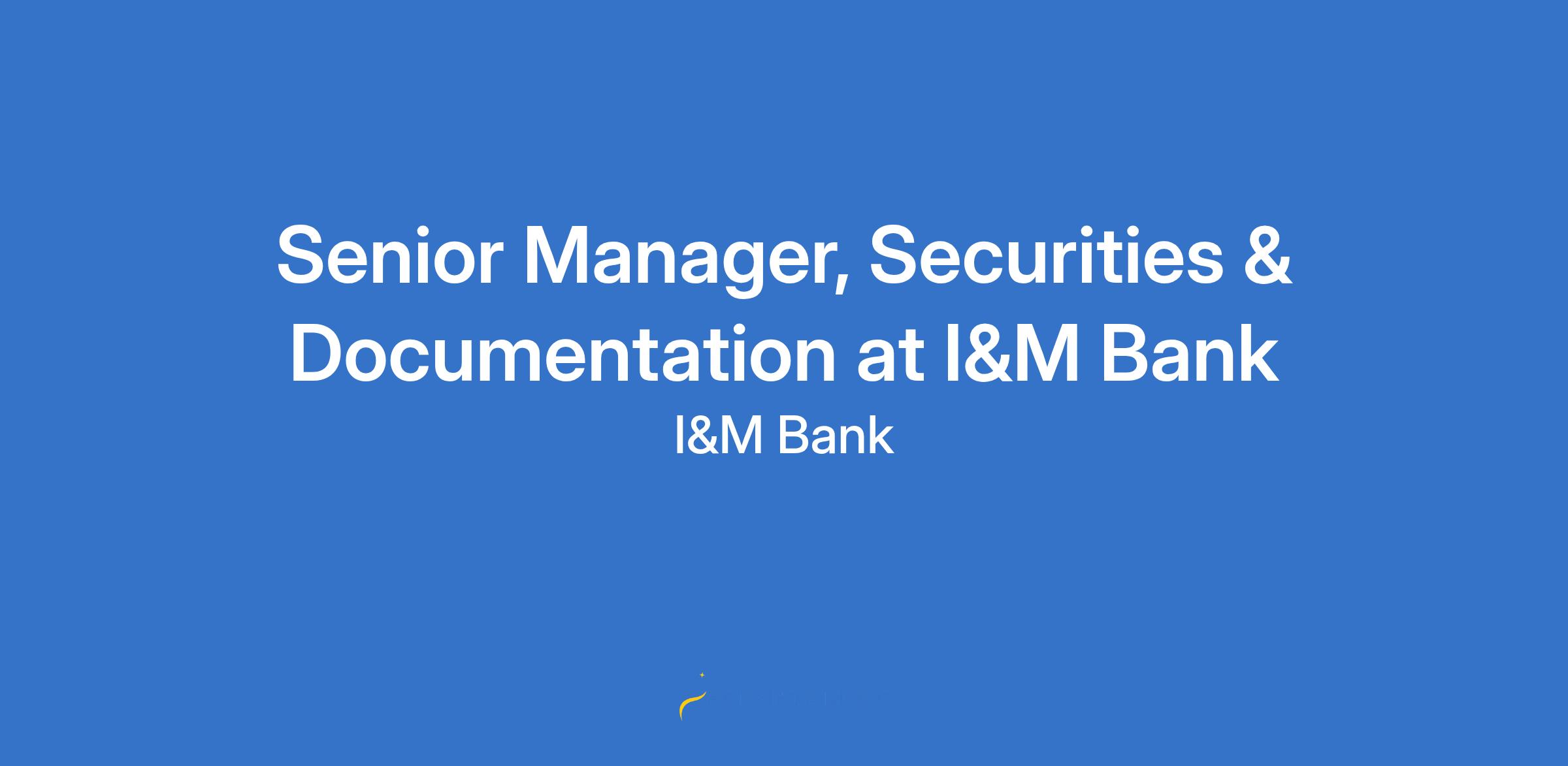 Senior Manager, Securities & Documentation at I&M Bank