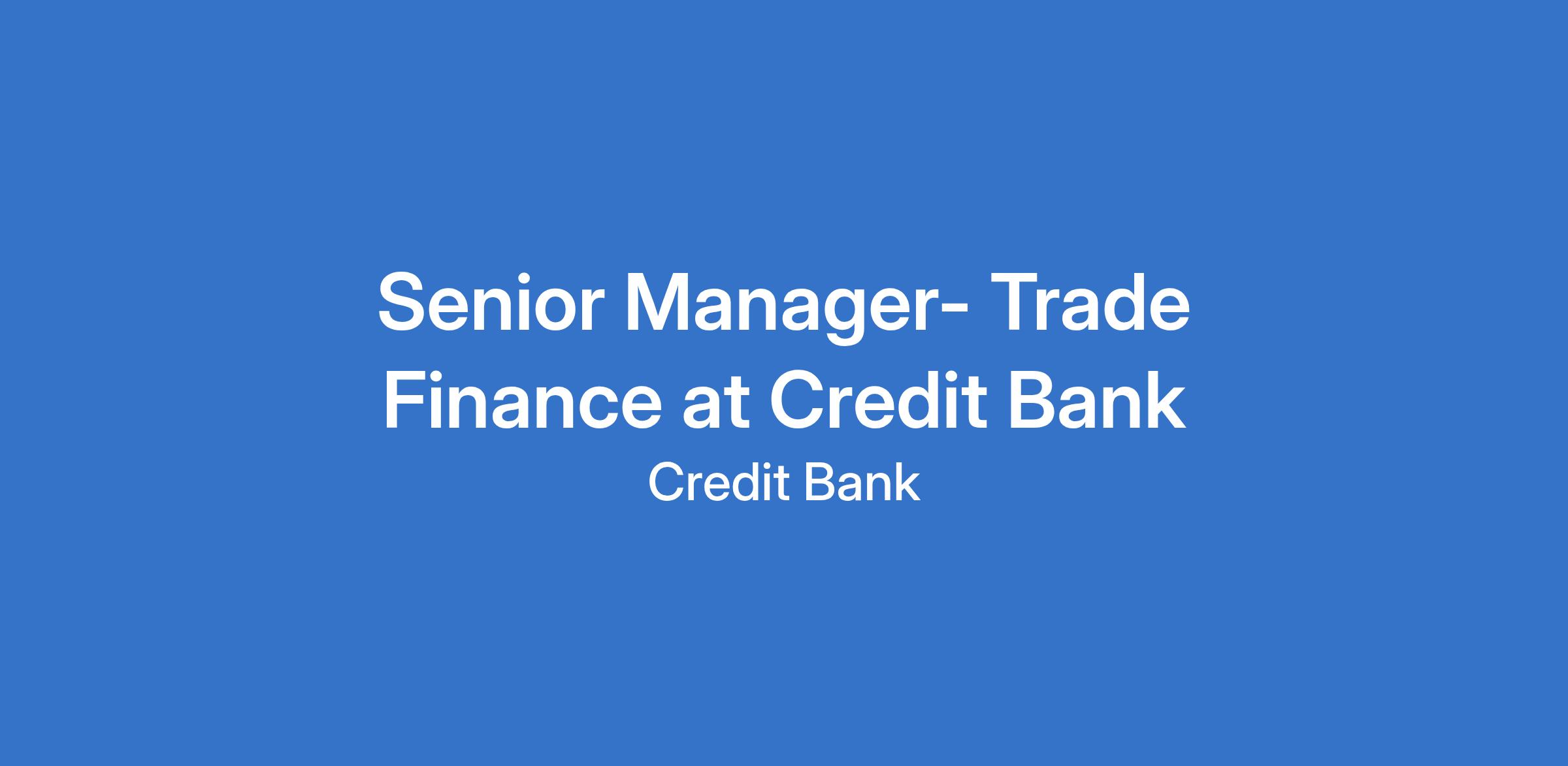 Minimum of 10 years of banking experience, with at least 5 years in a Trade Finance role.