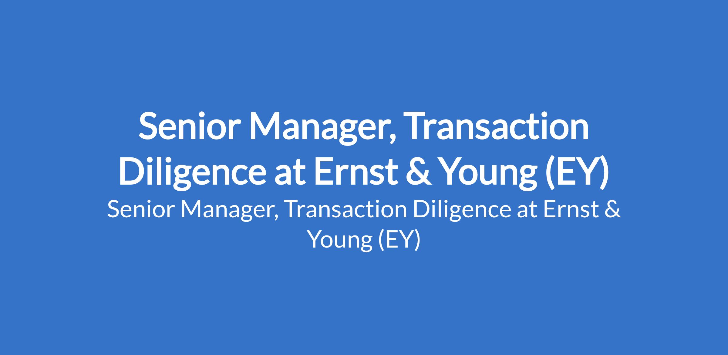 Ernst & Young (EY) is recruiting to fill the position of: Senior Manager, Transaction Diligence. The position is located in Lagos State. Interested candidates should possess a Bachelor's or Master's Degree in Accounting and/or related major; CPA or CA, CPA certification with a minimum 10 years of accounting experience.