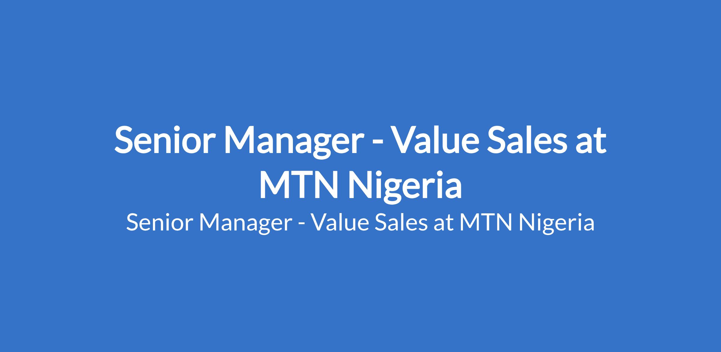 MTN Nigeria is recruiting to fill the position of: Senior Manager - Value Sales. The position is located in Akin Adesola - Victoria Island, Lagos State. Interested candidates should possess a First Degree in Business Administration, Engineering or any relevant discipline with 9 - 17 years experience.
