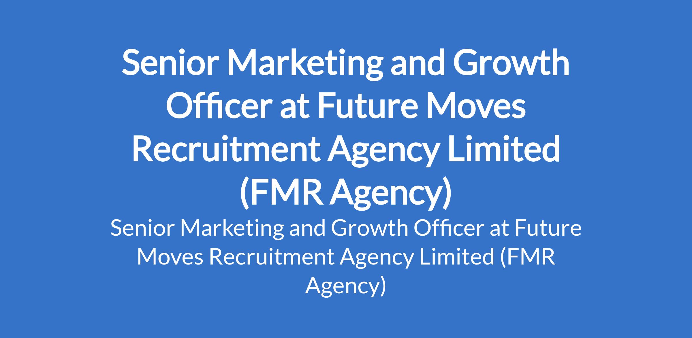 Future Moves Recruitment Agency Limited (FMR Agency) is recruiting to fill the position of: Senior Marketing and Growth Officer. The position is located in Lagos State. Salary: N700,000 / month. Interested candidates should possess a Bachelors Degree in Marketing, Business Administration, Communications, or a related field with a minimum of 5 years experience in marketing, growth, or commercial roles, with leadership exposure.
