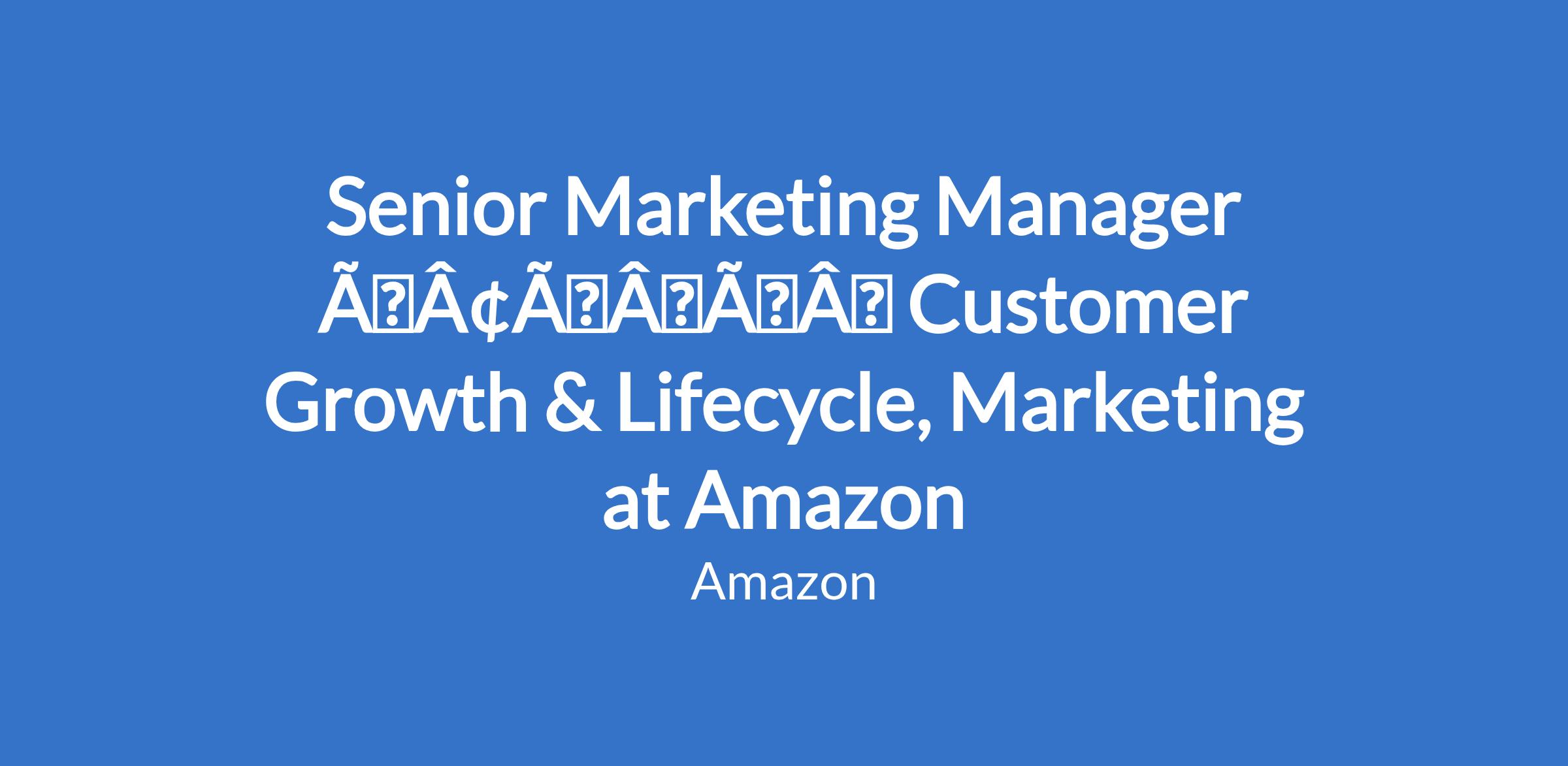 Senior Marketing Manager âÃÂàCustomer Growth & Lifecycle, Marketing at Amazon