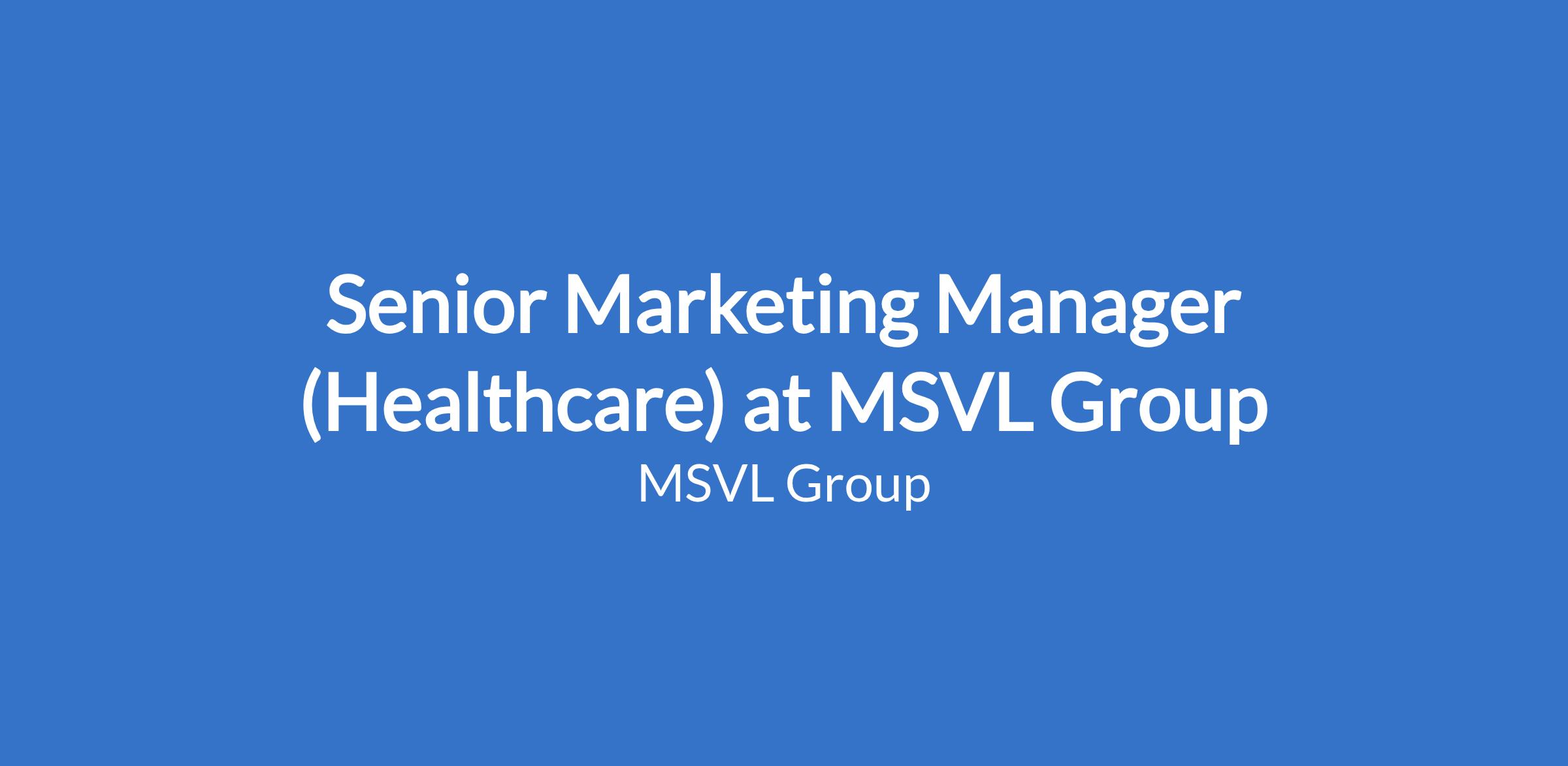 Senior Marketing Manager (Healthcare) at MSVL Group