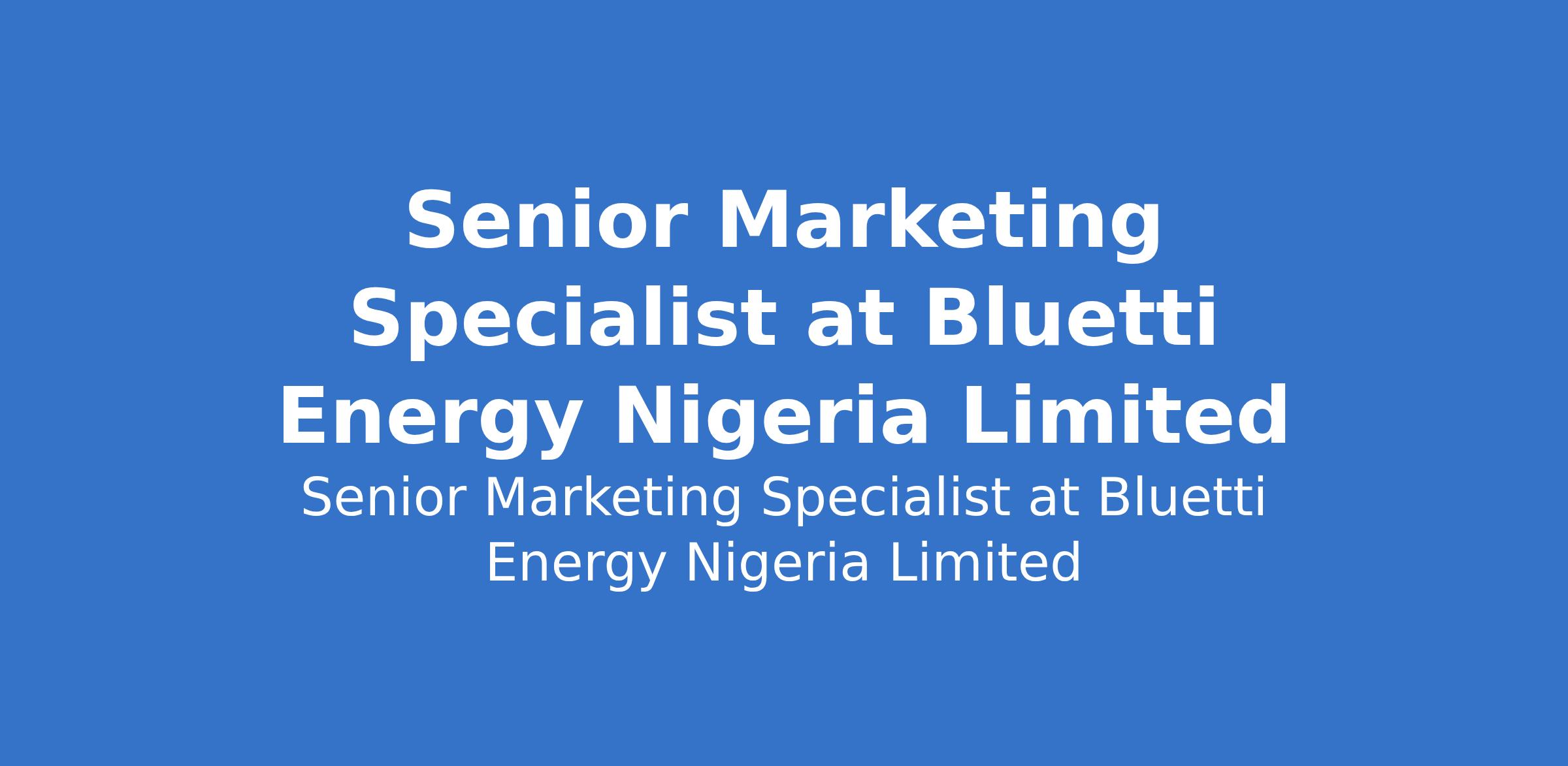 Bluetti Energy Nigeria Limited is recruiting to fill the position of: Senior Marketing Specialist. The position is located in Lagos State. Interested candidates should possess a Bachelors Degree in Marketing, Business Administration, or a related field with 4-5 years of proven experience in marketing, preferably in the solar home systems sector.