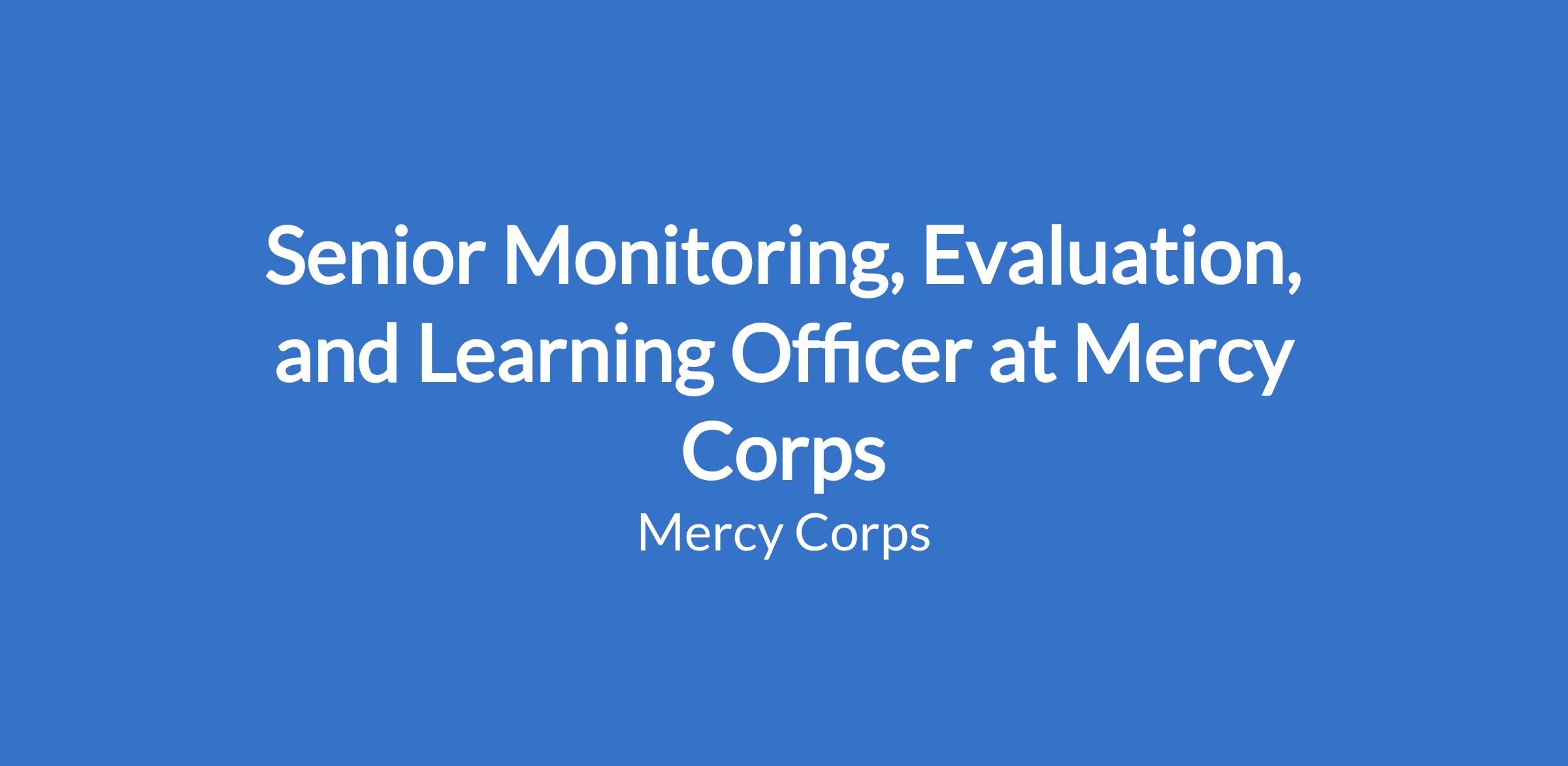 Senior Monitoring, Evaluation, and Learning Officer at Mercy Corps