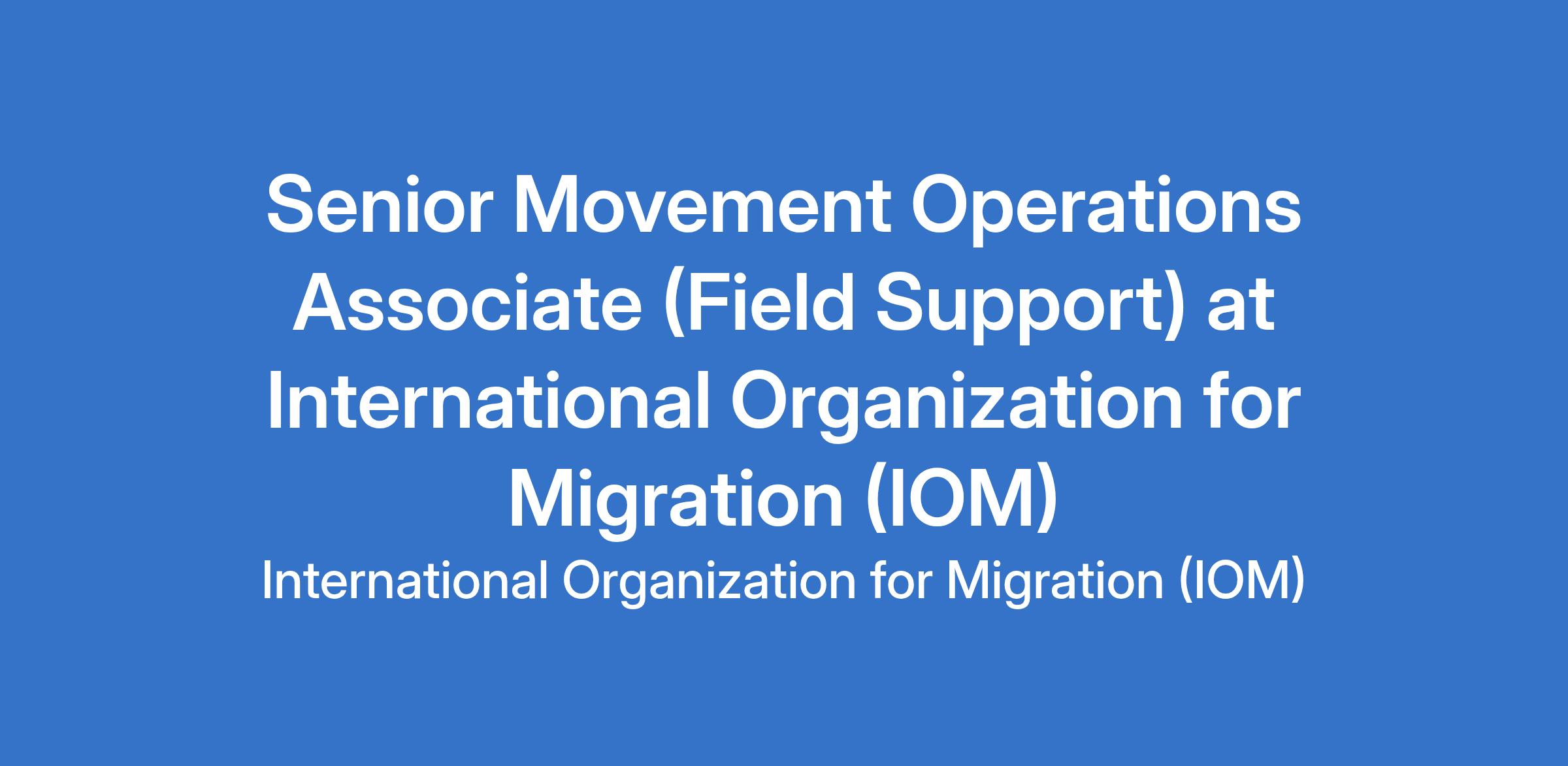 Senior Movement Operations Associate (Field Support) at International Organization for Migration (IOM)