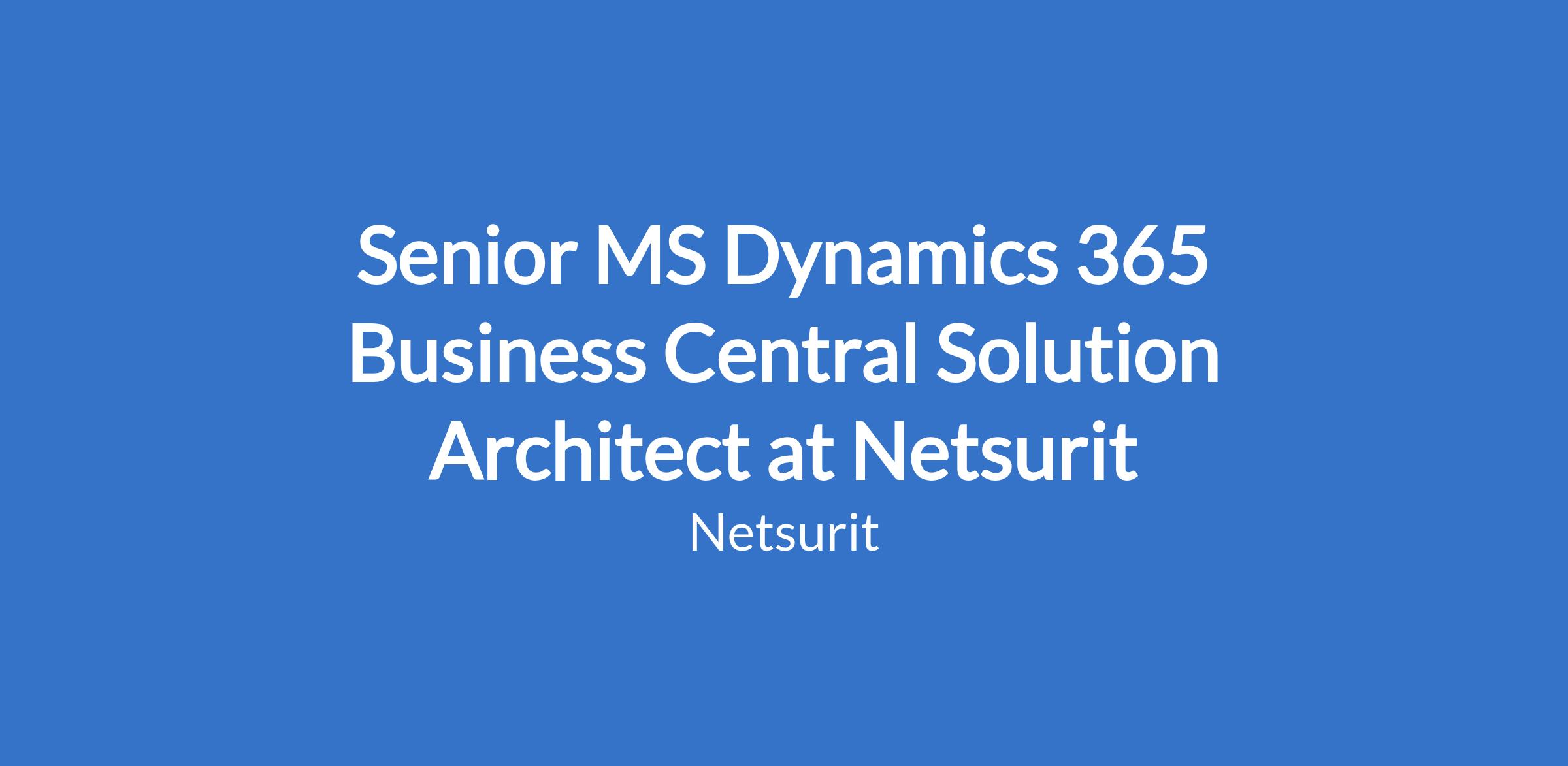 Senior MS Dynamics 365 Business Central Solution Architect at Netsurit