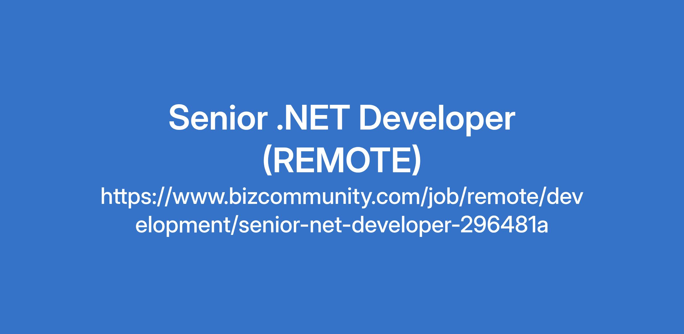 Senior .NET Developer (REMOTE)