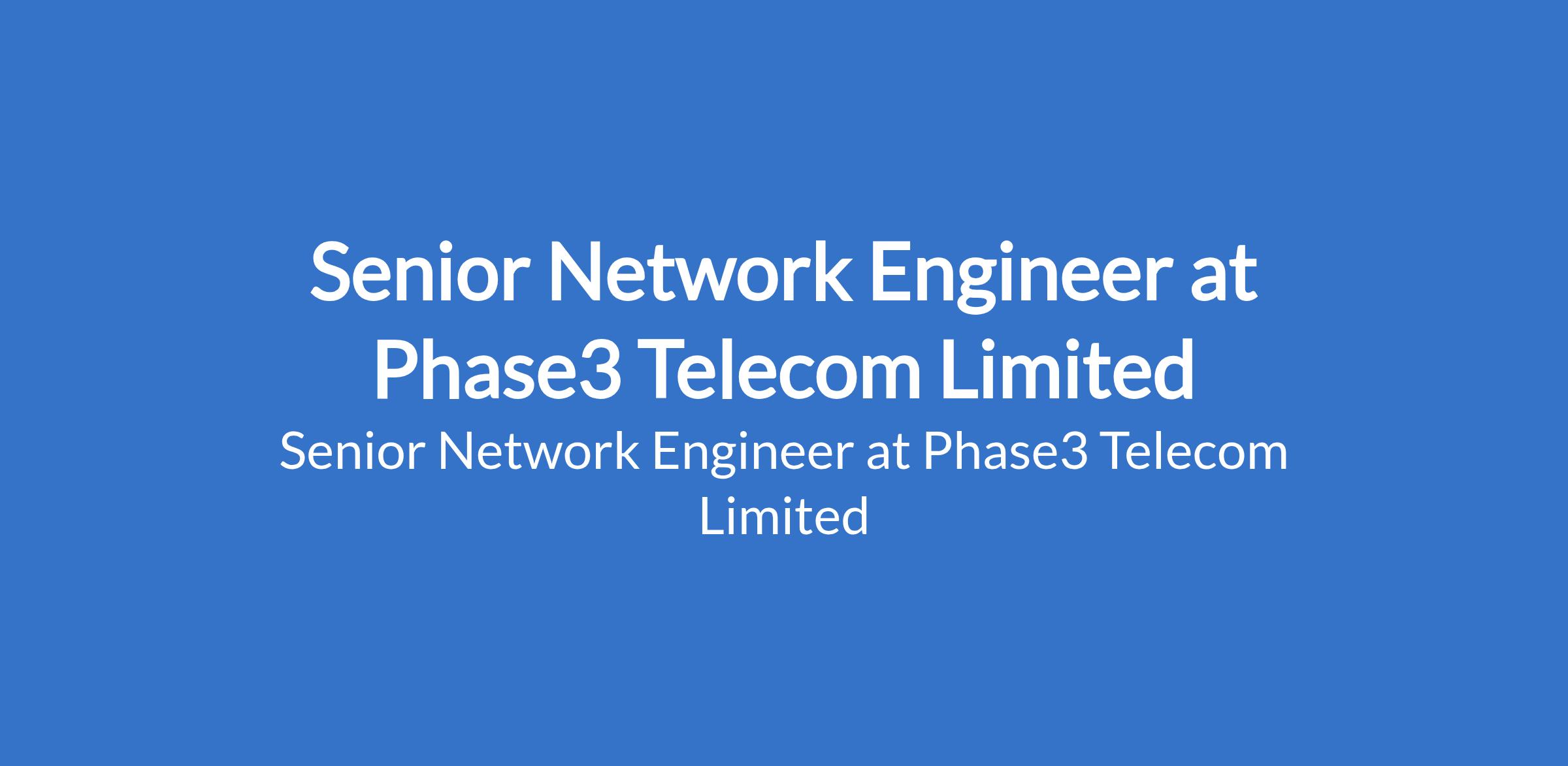 Phase3 Telecom Limited is recruiting to fill the position of: Senior Network Engineer. The position is located in Abuja. Interested candidates should possess a Bachelors Degree in Computer Science, Information Technology, or a related field, or equivalent experience with a minimum of 5 years of hands-on experience in a network engineering role, preferably within a telecom or ISP environment.