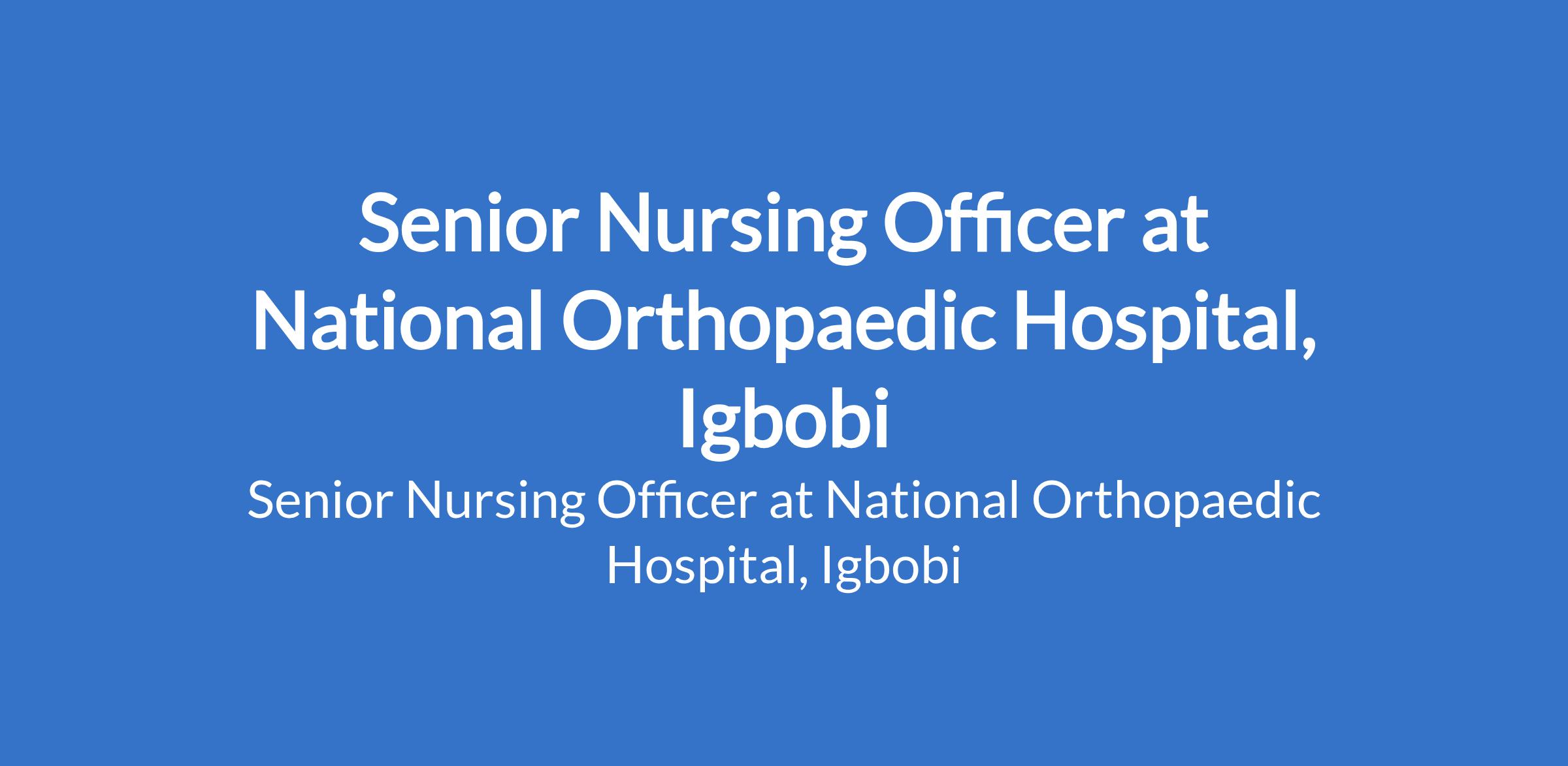 National Orthopaedic Hospital, Igbobi invites applications from suitably qualified candidates for the position of: Senior Nursing Officer. The position is located in Yaba, Lagos State. Interested candidates should possess a First Degree in Nursing from a recognized University with NYSC Discharge or Exemption Certificate and a current practicing Licence, and must have completed one year of internship.