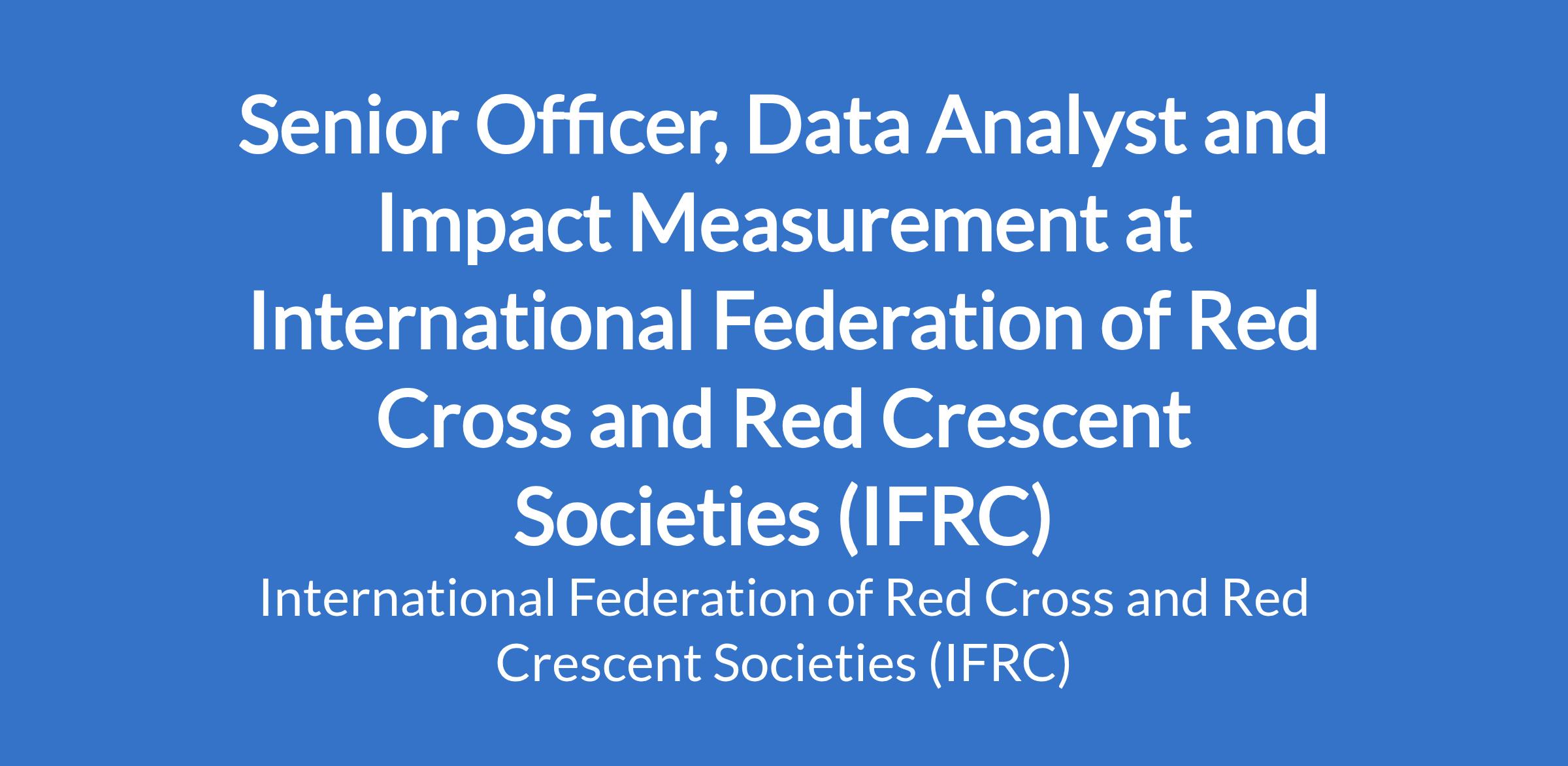 The Senior Data Analyst and Impact Measurement Officer is responsible for setting up and managing a database of key data on indicators showcasing impact of the National Societies in Africa Region on both emergency, humanitarian as well as long term initiatives building on existing data. The Officer will also contribute to data collection, validation, analysis and visualization processes; be responsible for developing areas for further assessment/research to show case the impact of RCRC work in collaboration with the National Societies and PNS. The officer will: