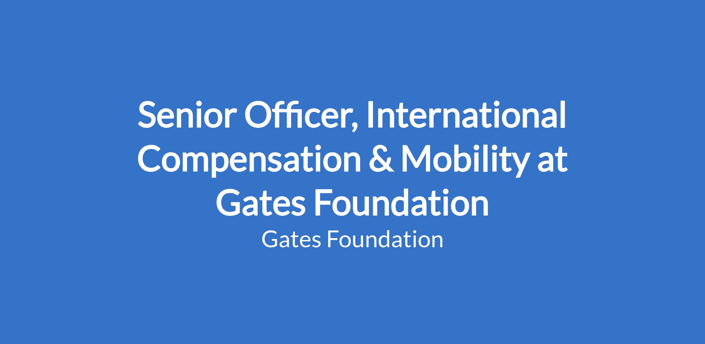 Senior Officer, International Compensation & Mobility at Gates Foundation