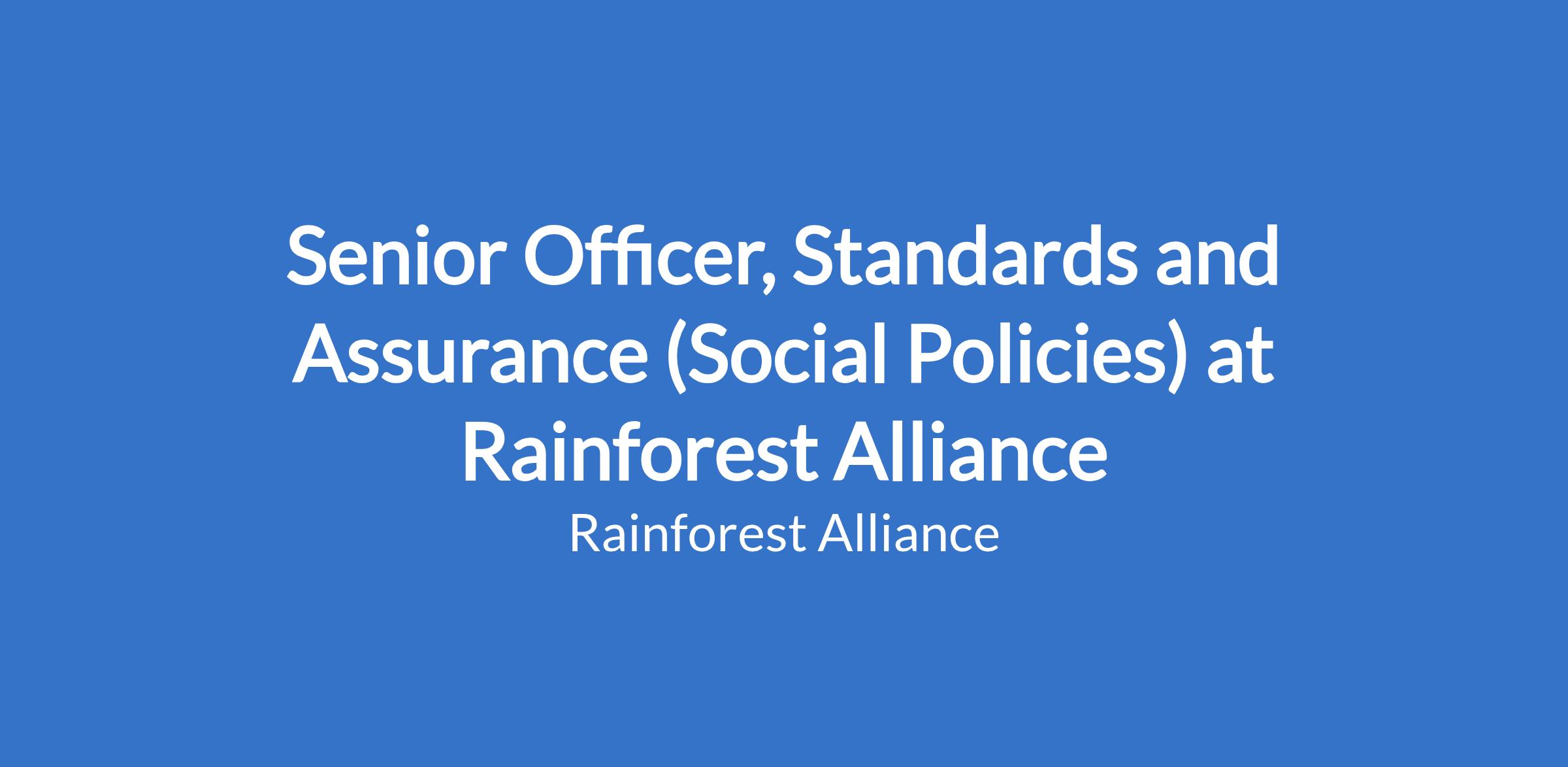 Senior Officer, Standards and Assurance (Social Policies) at Rainforest Alliance