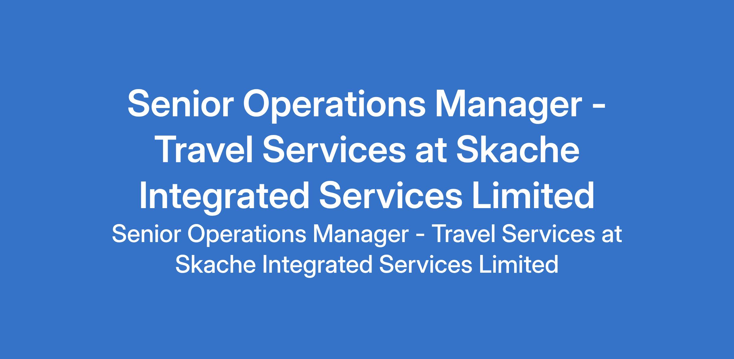 Skache Integrated Services Limited is recruiting to fill the position of: Senior Operations Manager - Travel Services. The position is located in Ikeja, Lagos State. Interested candidates should possess a Bachelors degree in Business Administration or a related discipline with 57 years experience in travel operations, with at least 3 years in a senior or managerial role.