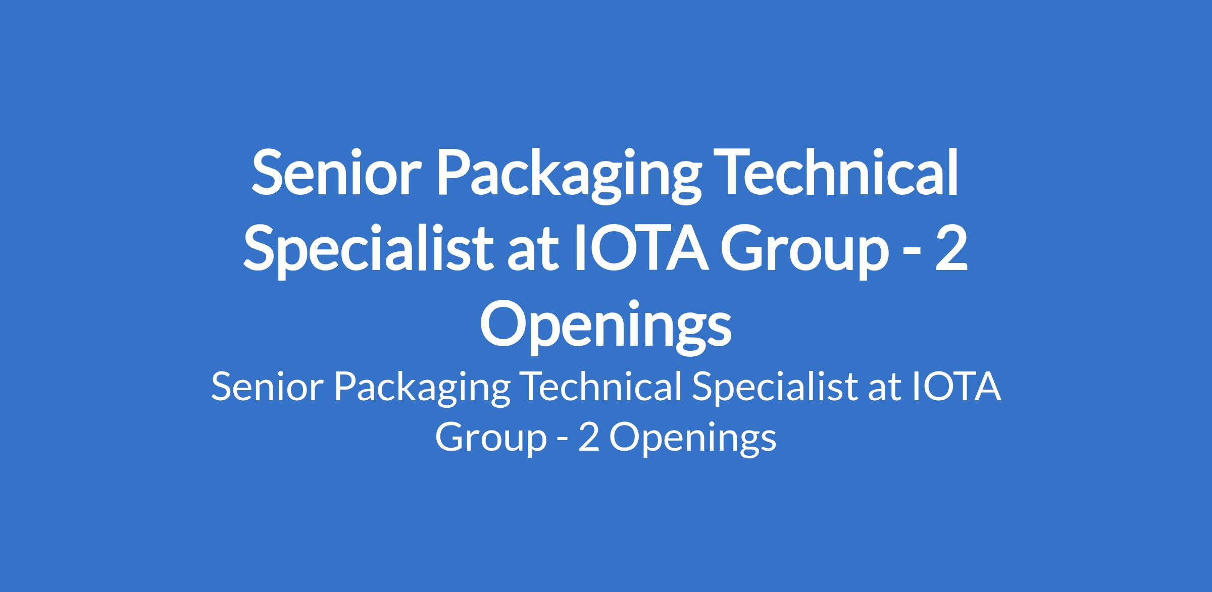 IOTA Group is recruiting to fill the position of: Senior Packaging Technical Specialist. The position is located in Lagos State. Interested candidates should possess relevant qualifications with a minimum of 10 years hands-on experience in high-speed packaging machinery