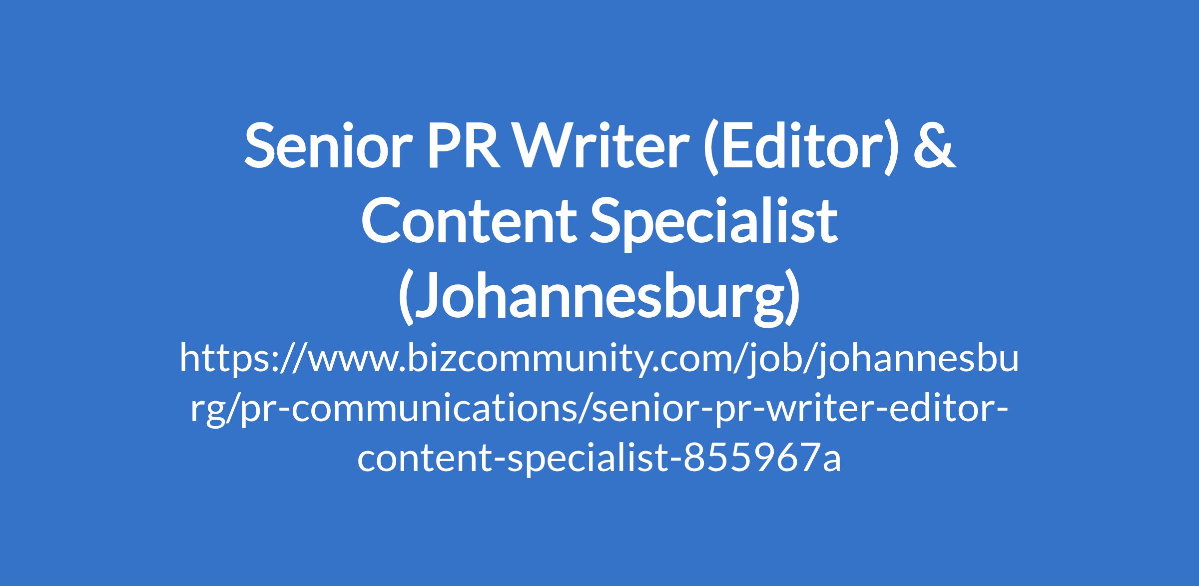 Senior PR Writer (Editor) & Content Specialist (Johannesburg)