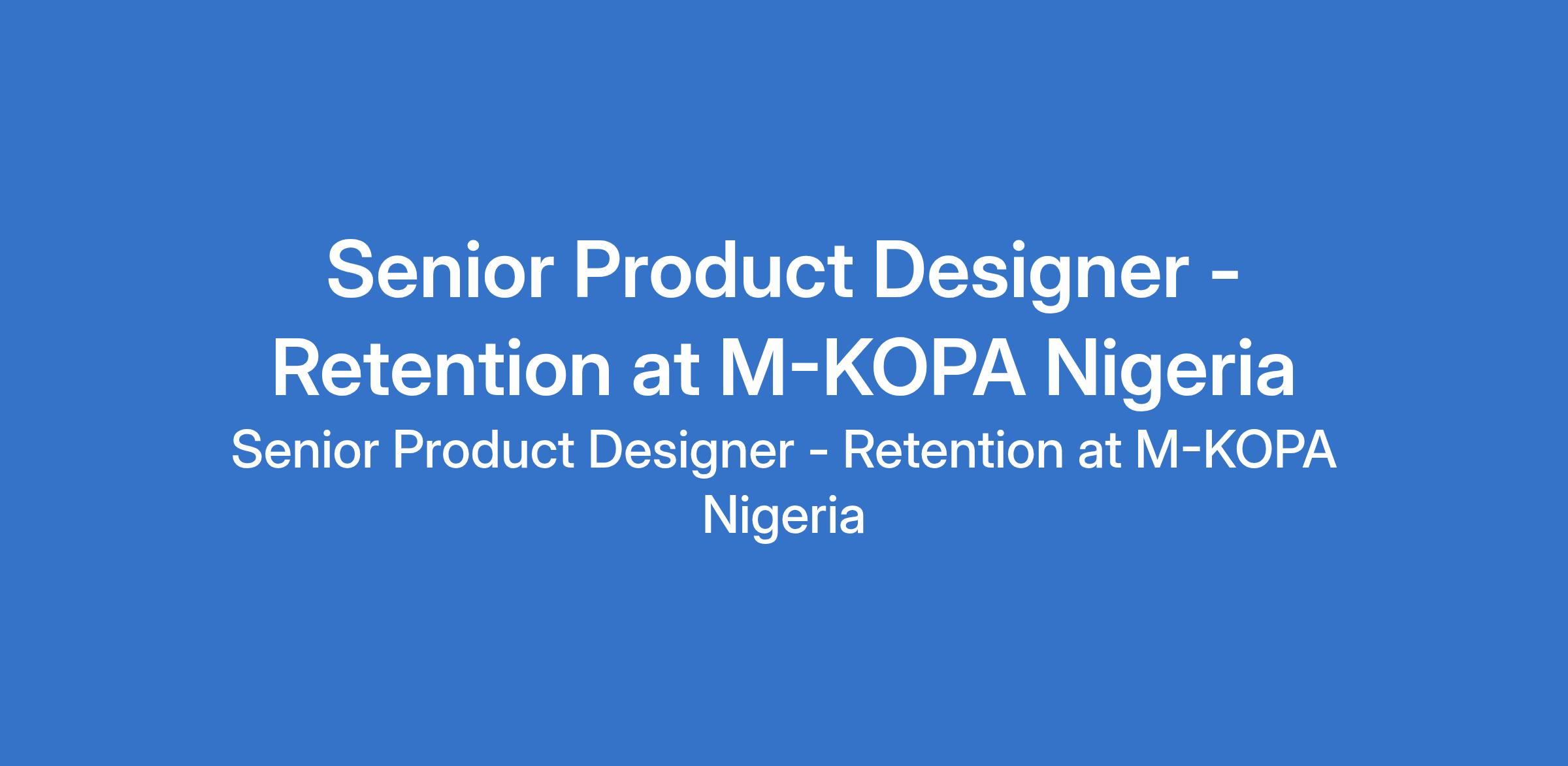 M-KOPA Nigeria is recruiting to fill the position of: Senior Product Designer - Retention. The position is located in Lagos State. Interested candidates should possess relevant qualifications with 5+ years experience in product design with a focus on customer-facing digital products.