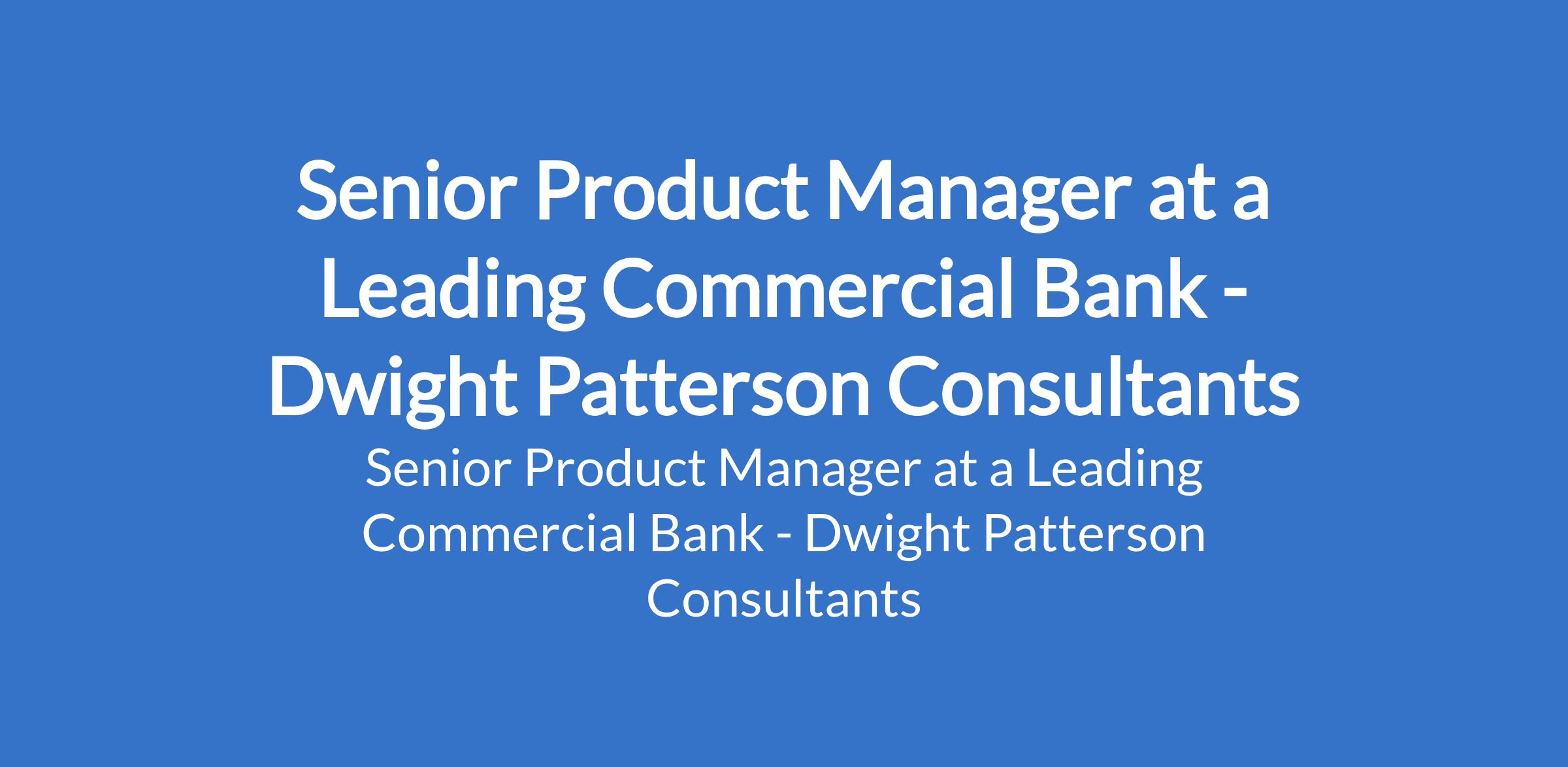 Senior Product Manager at a Leading Commercial Bank - Dwight Patterson Consultants