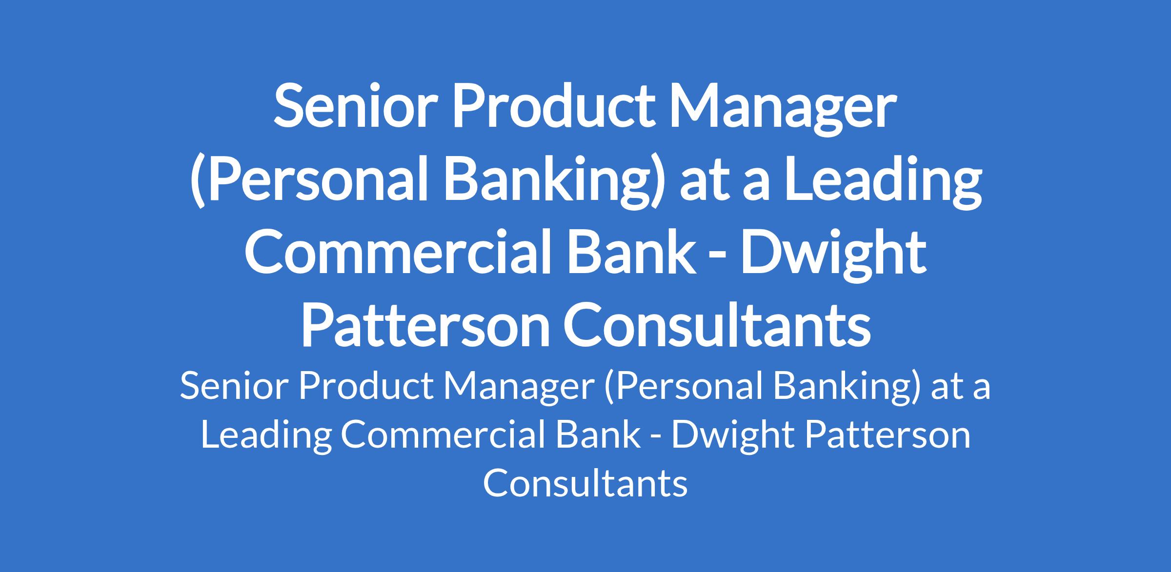 Dwight Patterson Consultants - Our client, a leading Commercial Bank is recruiting to fill the position of: Senior Product Manager (Personal Banking). The position is located in Lagos State. Interested candidates should possess relevant qualifications and experience.