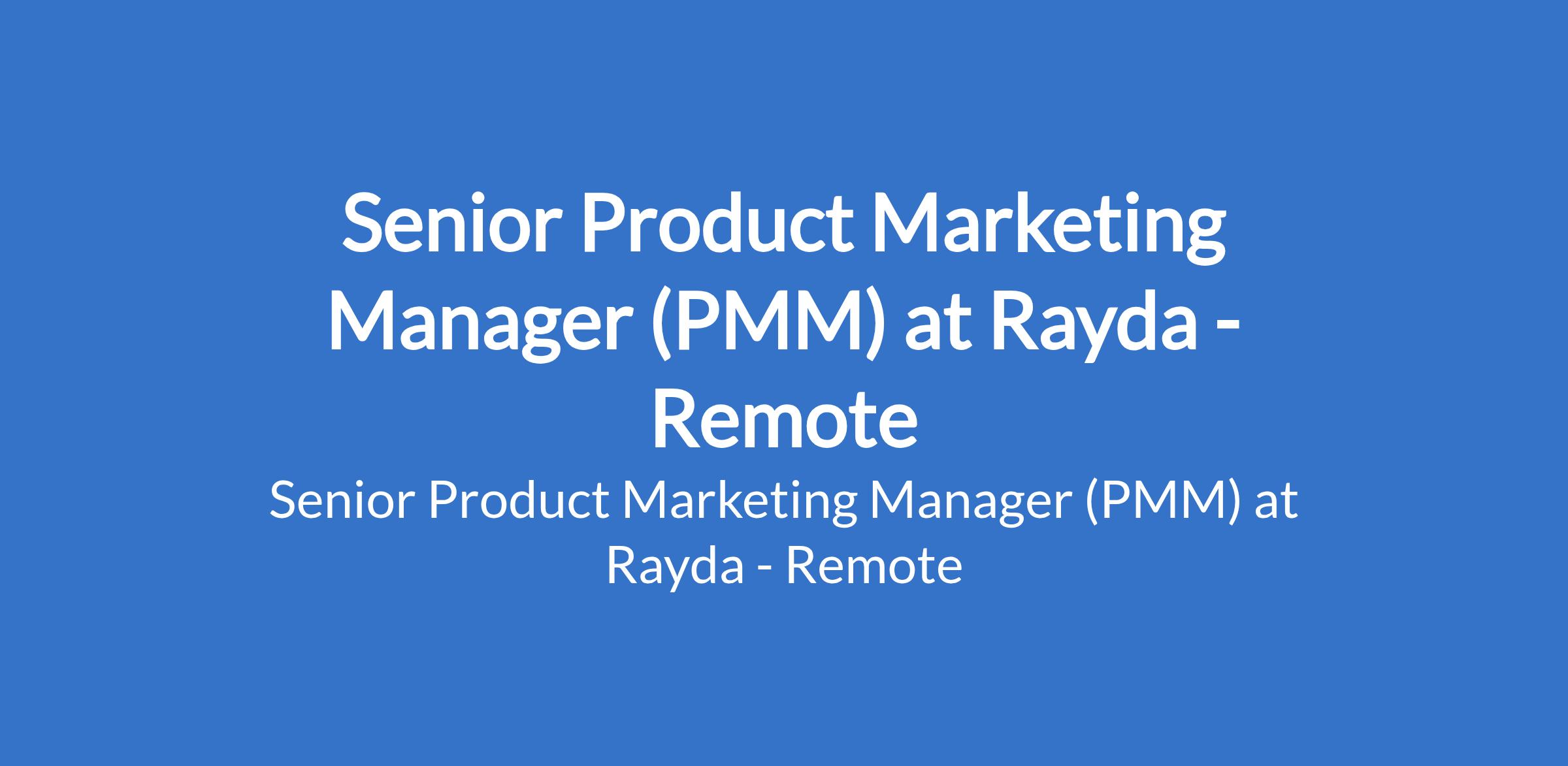 Rayda is recruiting to fill the position of: Senior Product Marketing Manager (PMM). This is a Remote job. Interested candidates should possess relevant qualifications.