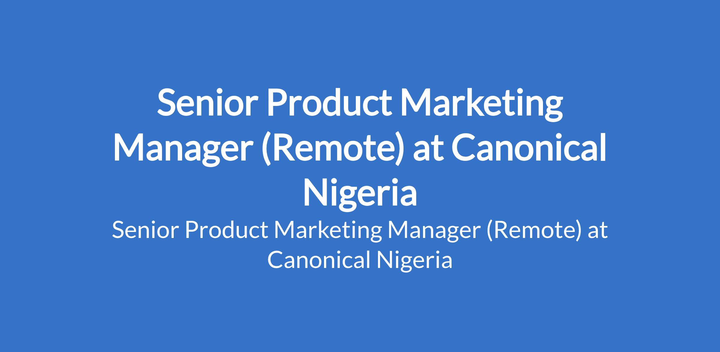 Canonical Nigeria is recruiting to fill the position of: Senior Product Marketing Manager. The position is located in Lagos State (Remote). Interested candidates should possess relevant qualifications.