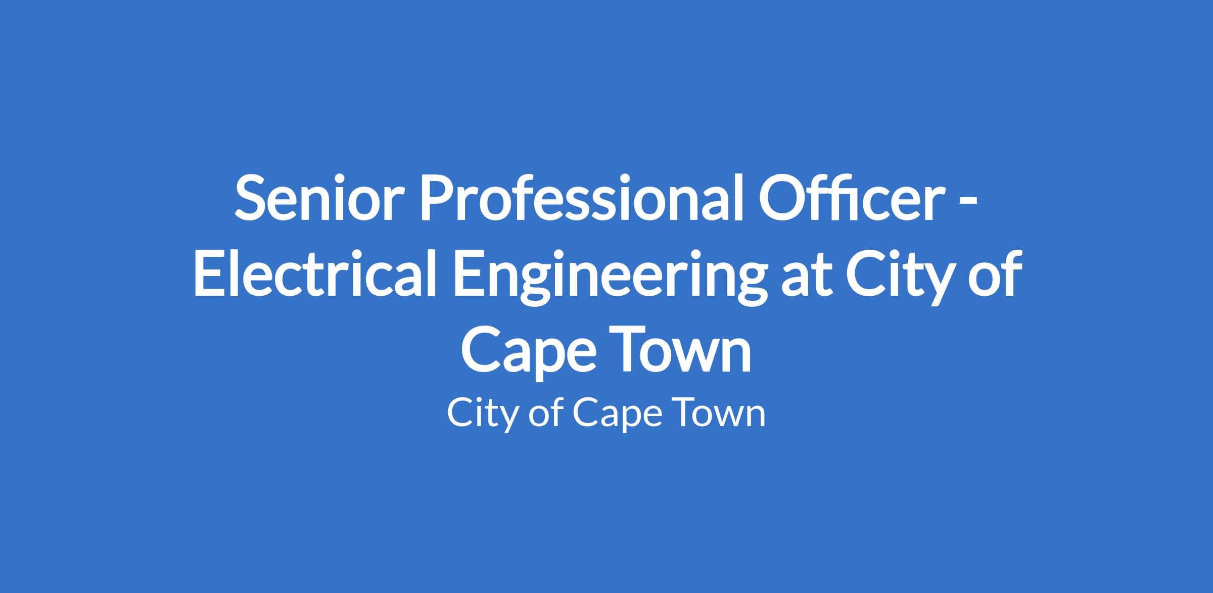 Senior Professional Officer - Electrical Engineering at City of Cape Town