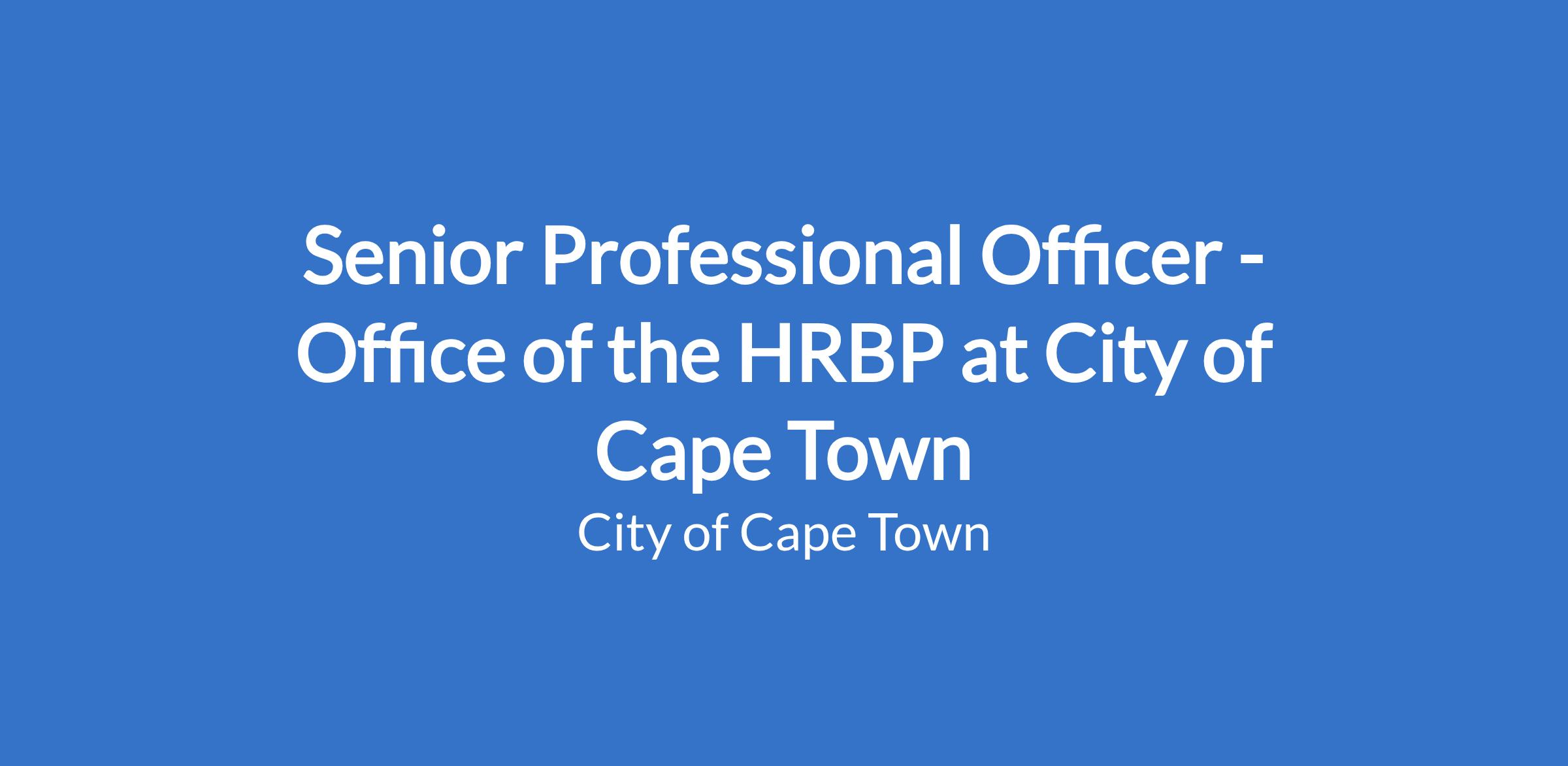 Senior Professional Officer - Office of the HRBP at City of Cape Town