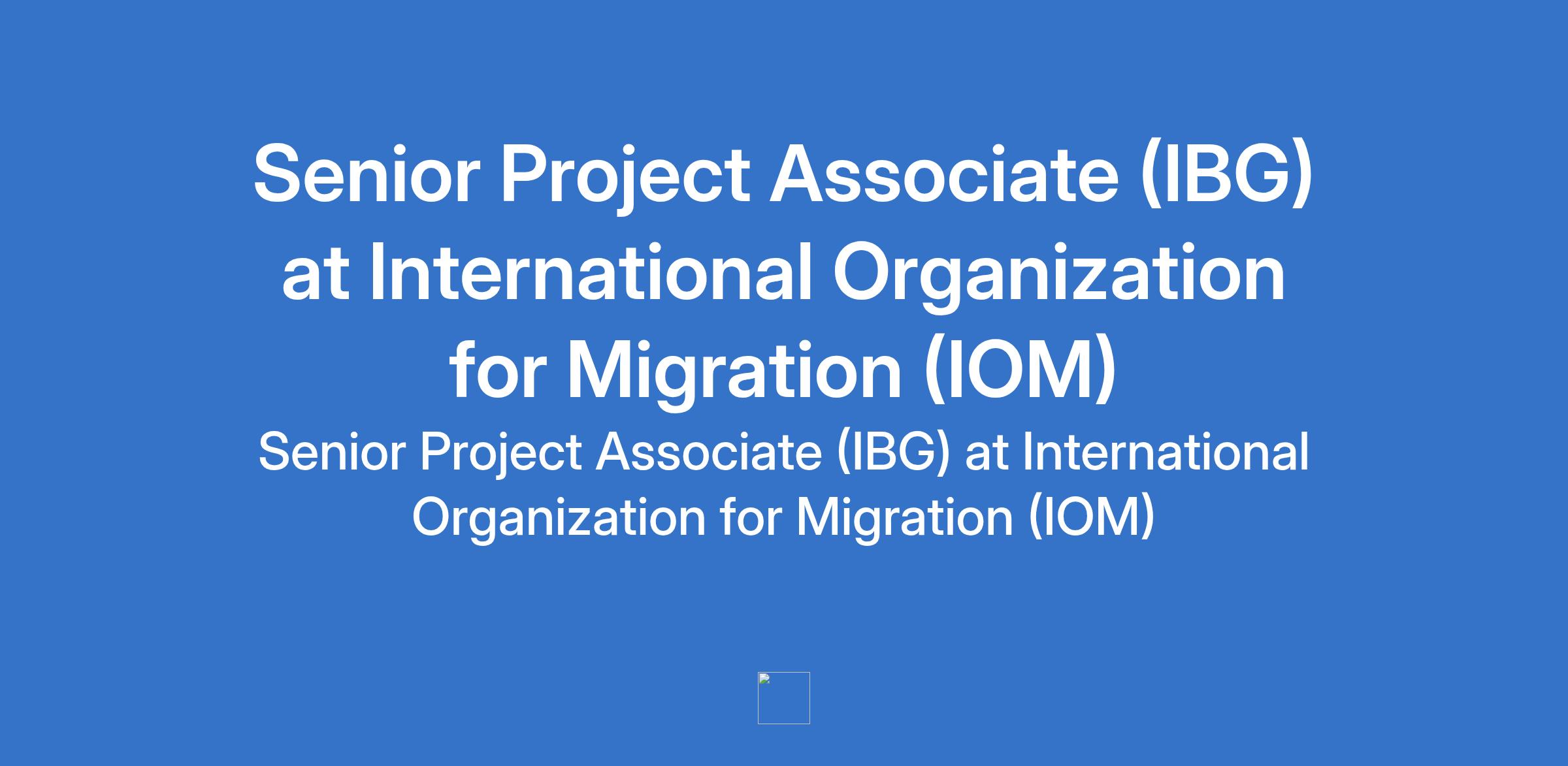 Senior Project Associate (IBG) at International Organization for Migration (IOM)