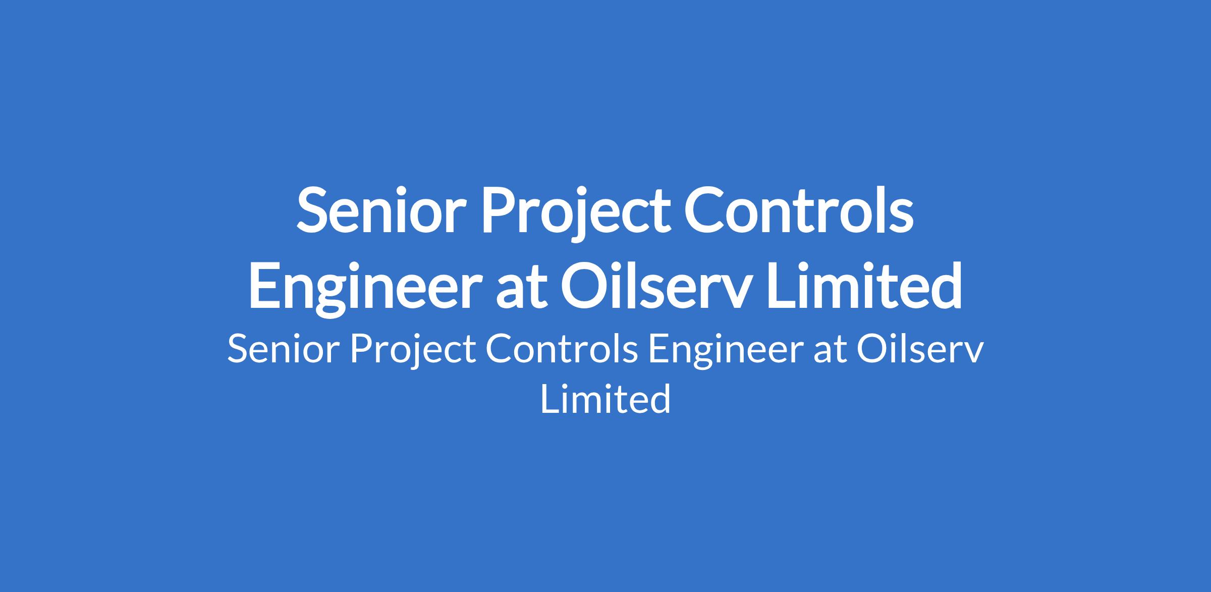 Oilserv Limited is recruiting to fill the position of: Senior Project Controls Engineer. The position is located in Rivers State. Interested candidates should possess a Bachelor's Degree in Engineering or equivalent with a minimum of 10 years' experience in a similar role.