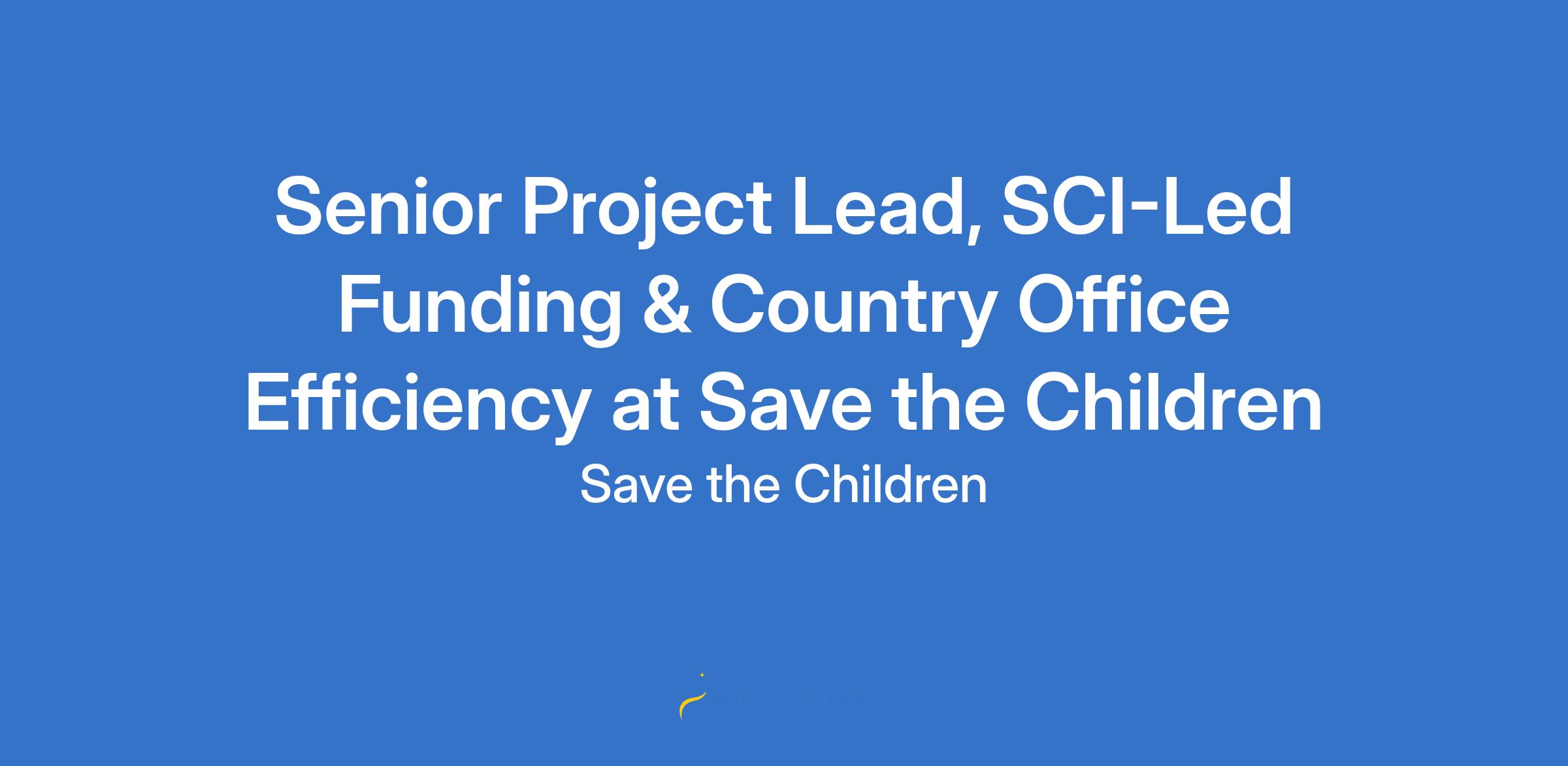 Senior Project Lead, SCI-Led Funding & Country Office Efficiency at Save the Children