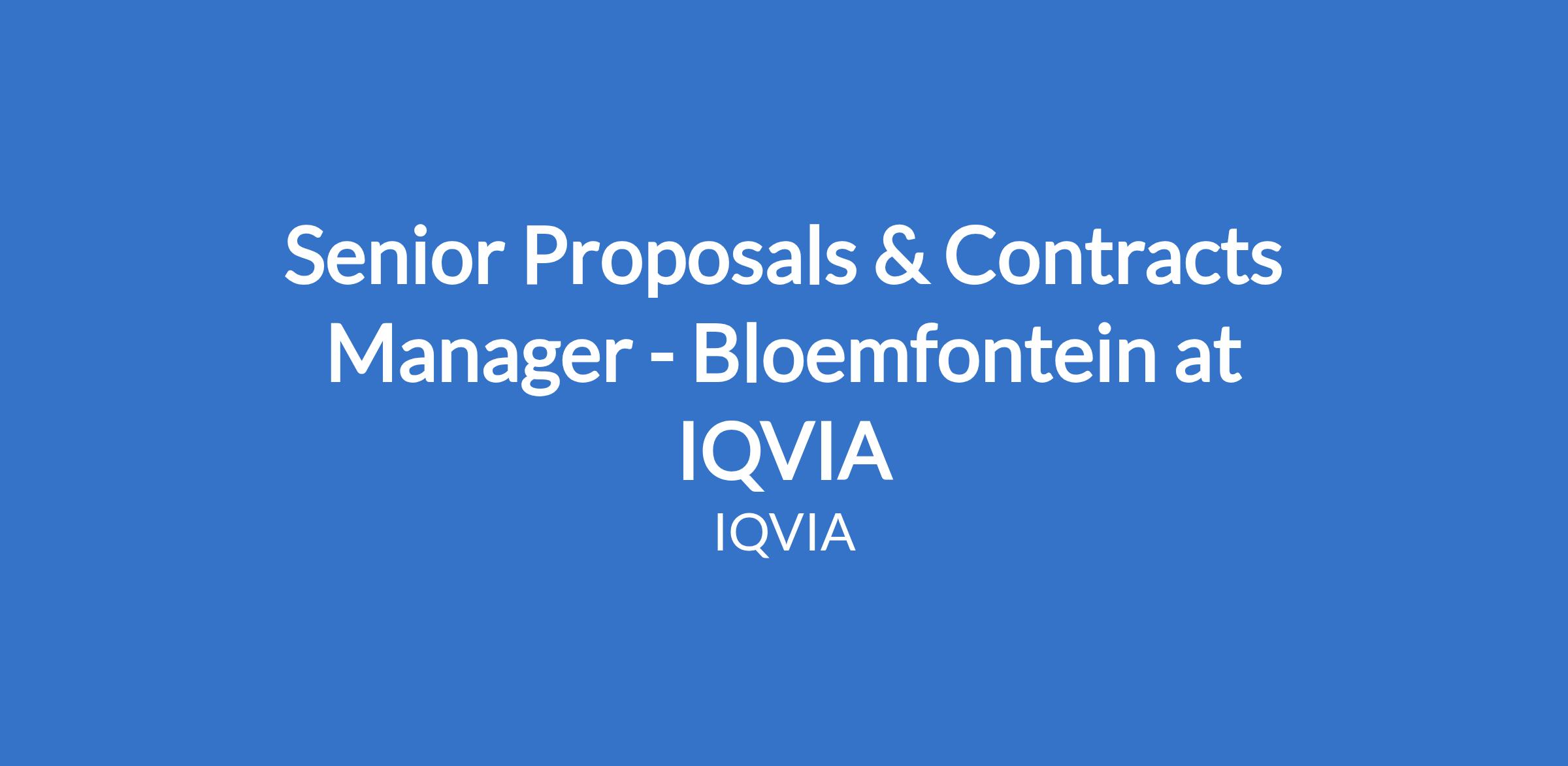 Senior Proposals & Contracts Manager - Bloemfontein at IQVIA