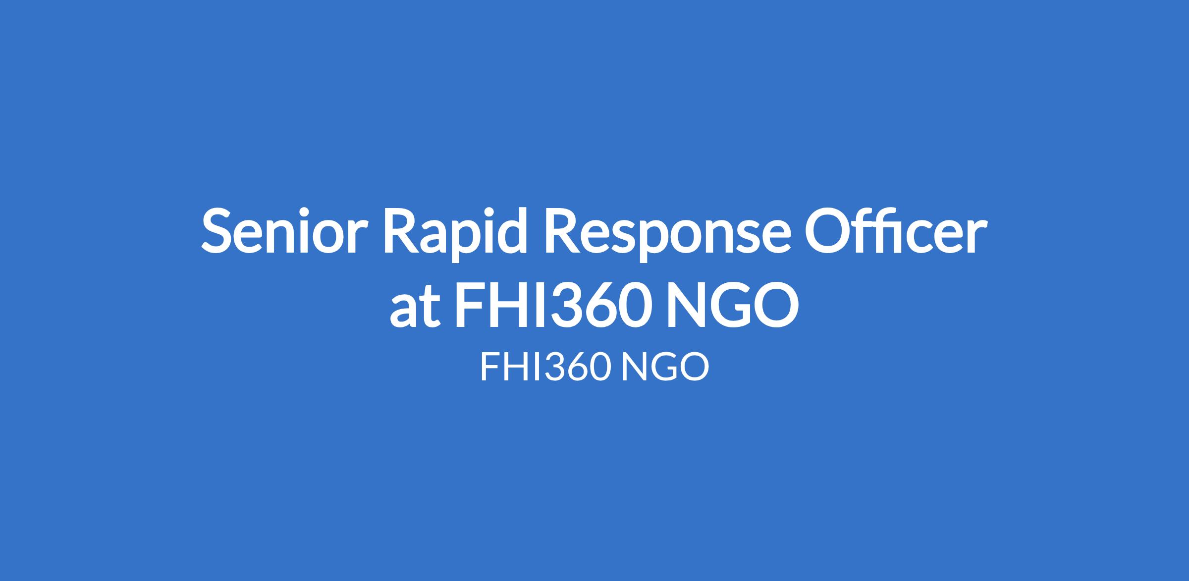 Senior Rapid Response Officer at FHI360 NGO