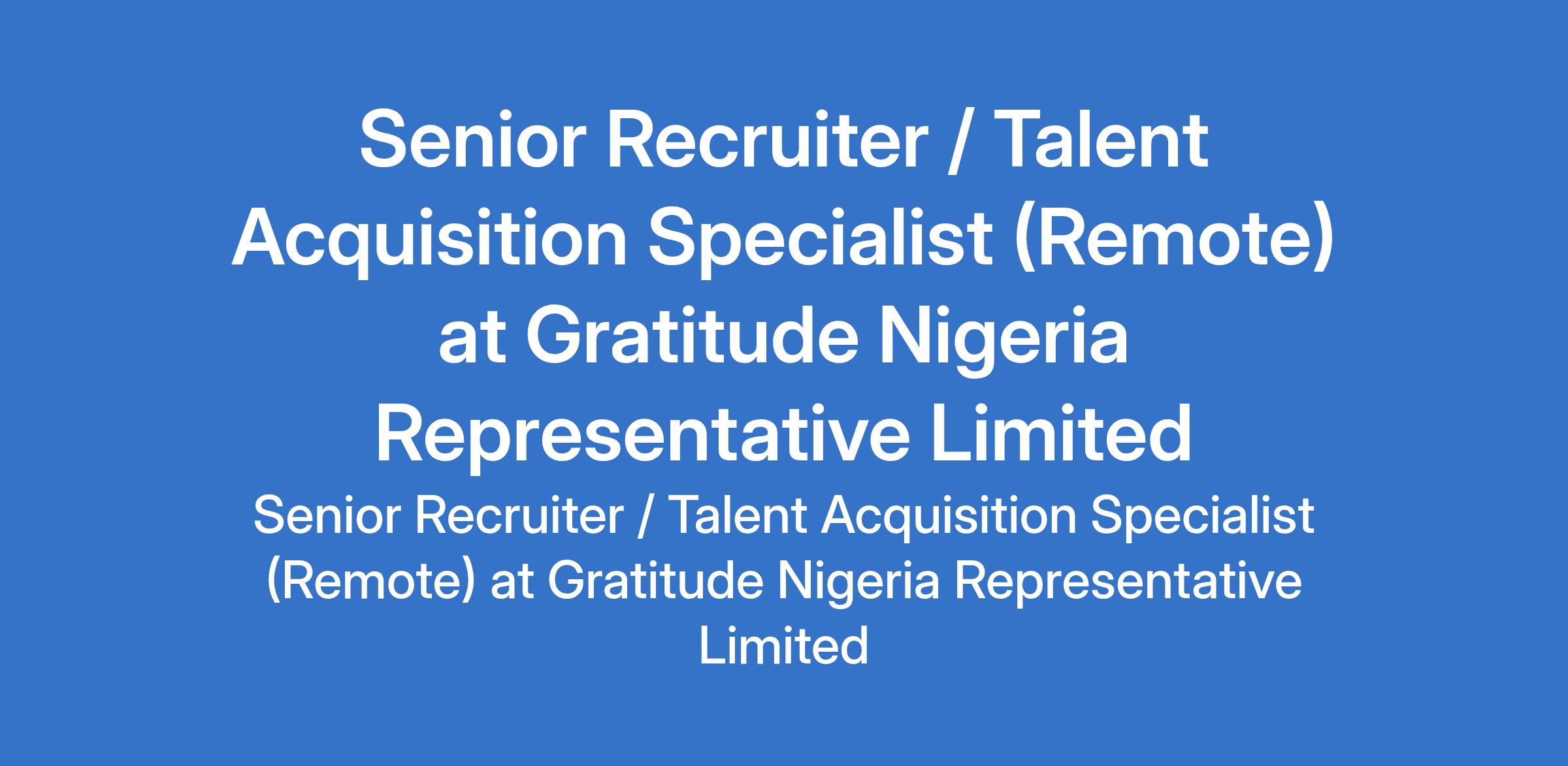 Gratitude Nigeria Representative Limited is recruiting to fill the position of: Senior Recruiter / Talent Acquisition Specialist. This is a remote job. Interested candidates should possess relevant qualifications with a minimum of 6 years proven experience as a Recruiter or HR Talent Acquisition Specialist.