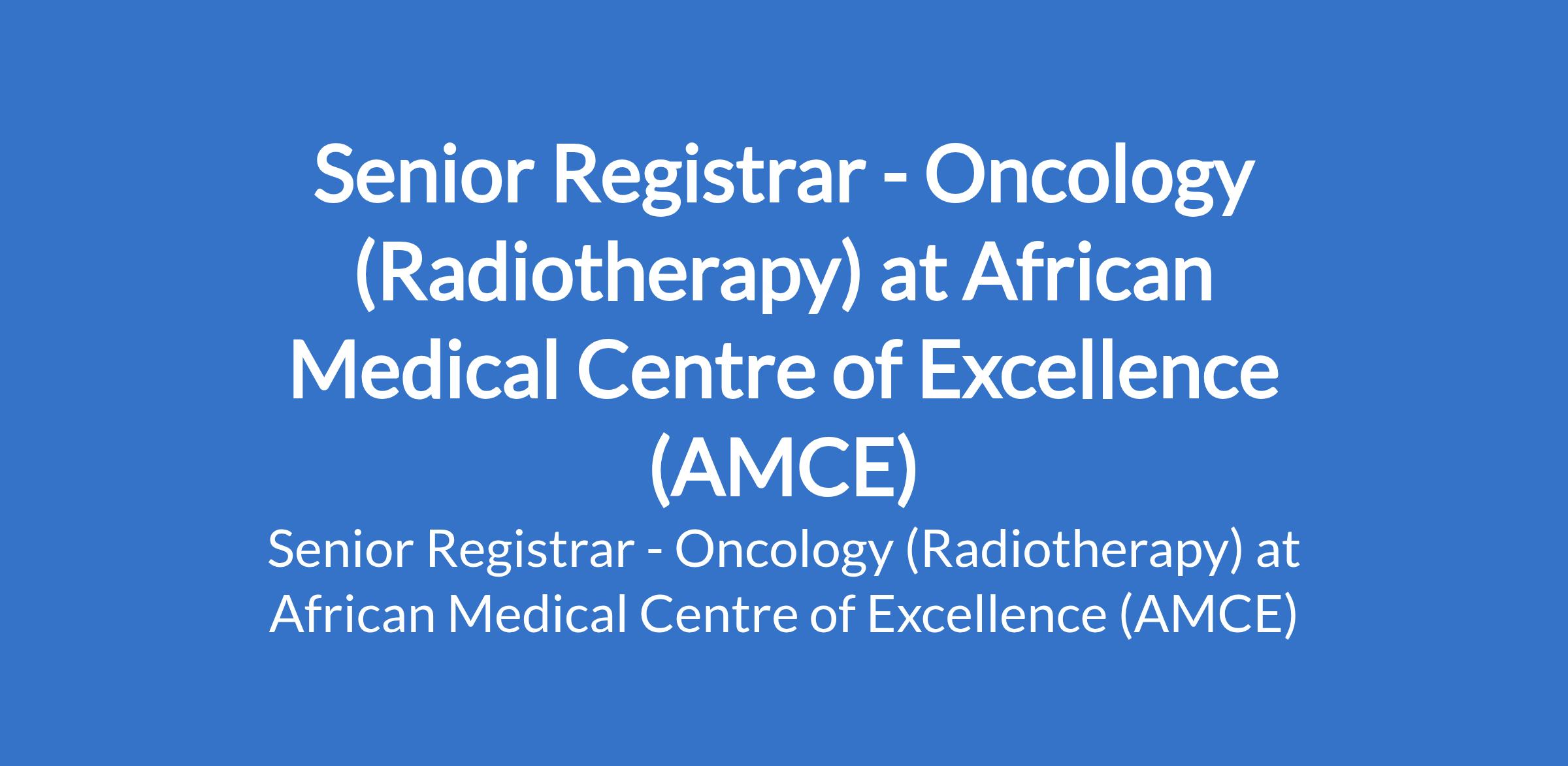 African Medical Centre of Excellence (AMCE) is recruiting to fill the position of: Senior Registrar Oncology (Radiotherapy). The position is located in Abuja. Interested candidates should possess a Diploma or Bachelors Degree in Pharmacy Technology / Pharmaceutical Sciences from an accredited institution with a minimum of 2 years experience as a Pharmacy Technician, with at least 1 year in an oncology or sterile compounding setting.