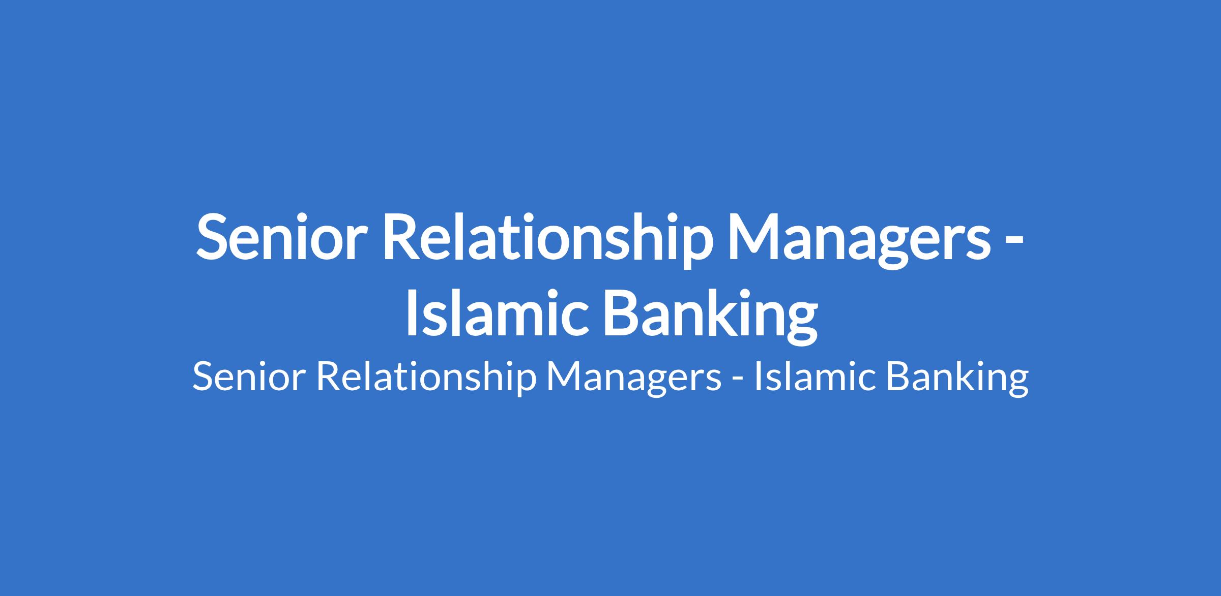 Senior Relationship Managers - Islamic Banking