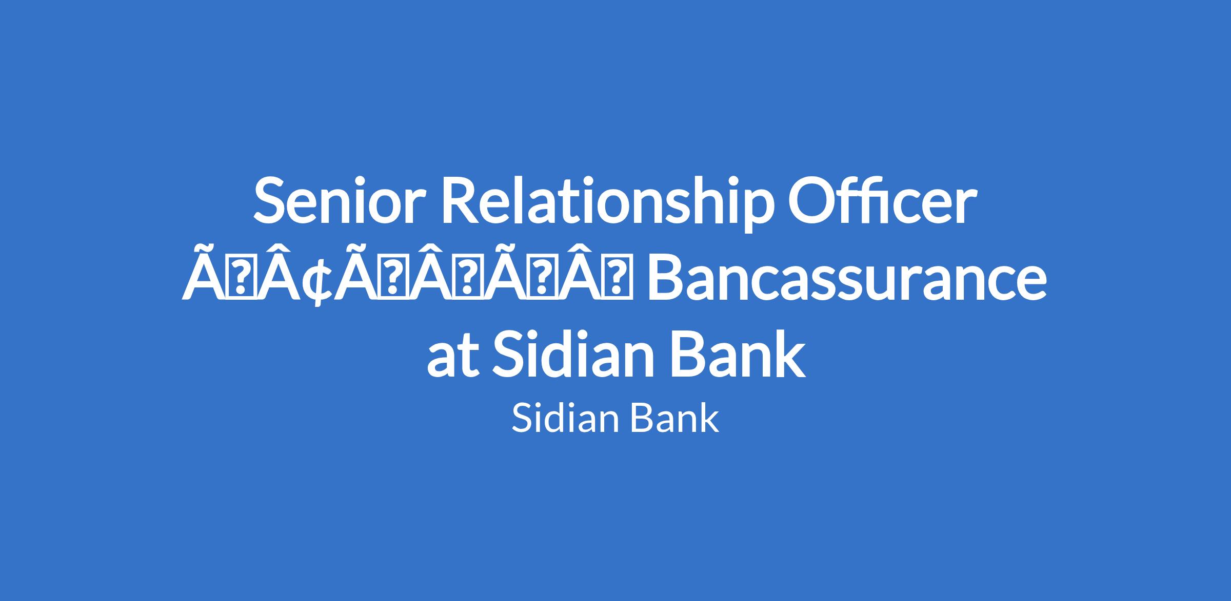 Senior Relationship Officer âÃÂàBancassurance at Sidian Bank