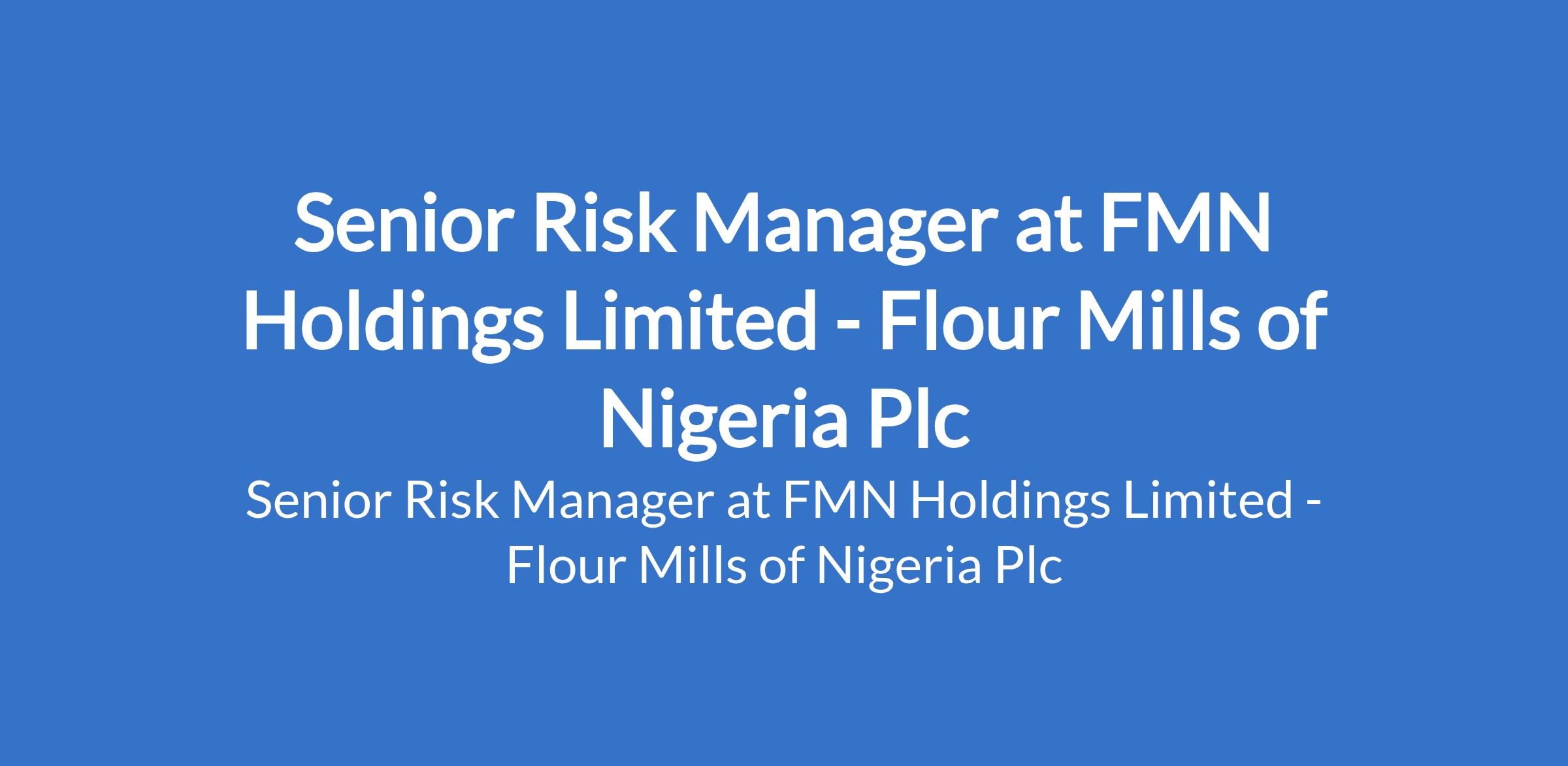 Flour Mills of Nigeria Plc is recruiting to fill the position of: Senior Risk Manager. Interested candidates should possess a First Degree in Accounting, Sciences, Engineering, or related disciplines with a minimum of seven years cognate experience in Risk Management, Assurance, or Business Continuity.