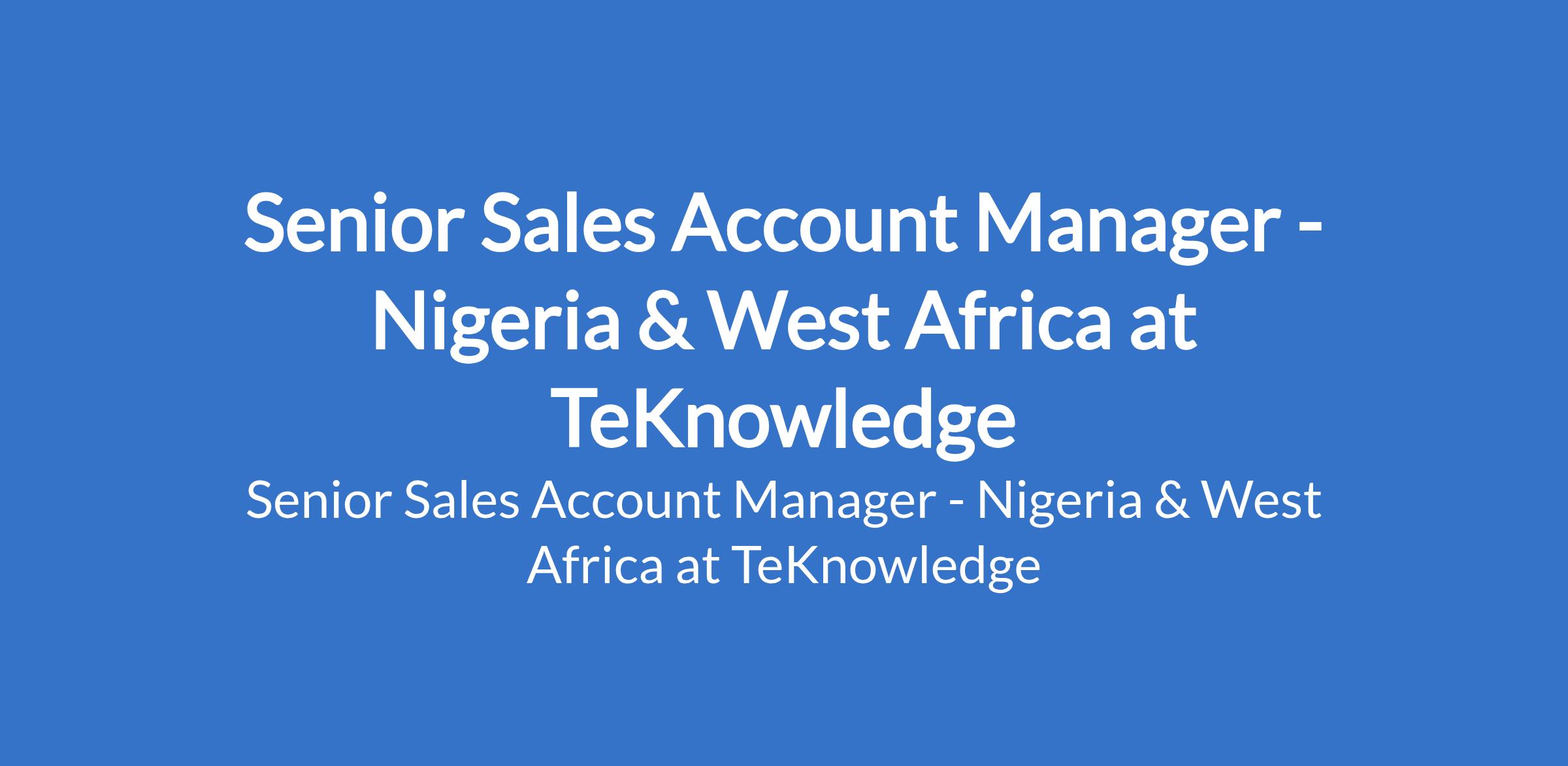 TeKnowledge is recruiting to fill the position of: Senior Sales Account Manager - Nigeria & West Africa. The position is located in Victoria Island, Lagos State. Interested candidates should possess relevant qualifications with 10+ years of experience in B2B technology/services sales and strategic account management.