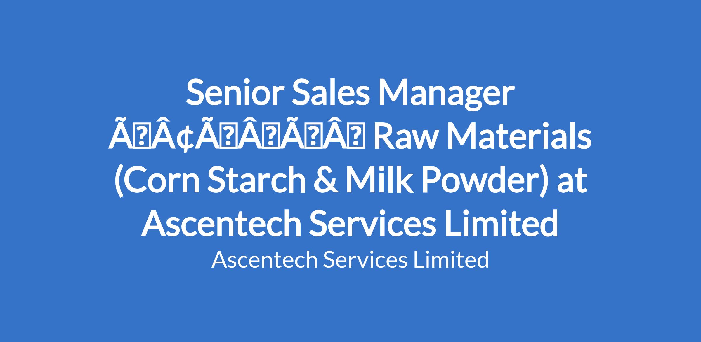 Senior Sales Manager âÃÂàRaw Materials (Corn Starch & Milk Powder) at Ascentech Services Limited