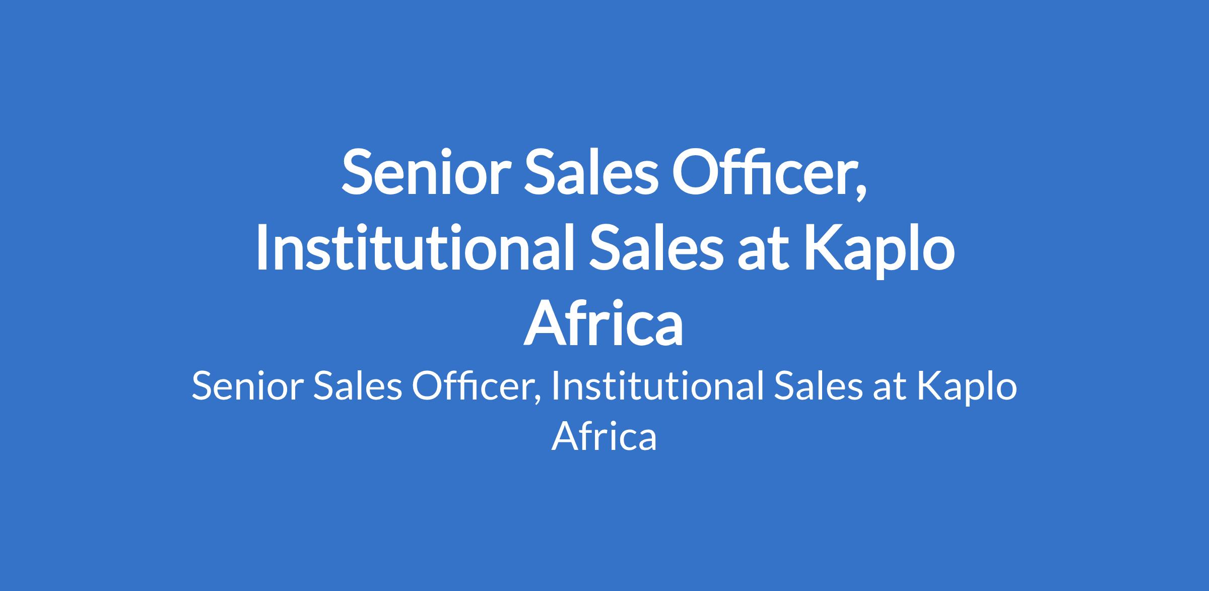 Kaplo Africa is recruiting to fill the position of: Senior Sales Officer, Institutional Sales. The position is located in Lagos State. Interested candidates should possess a minimum of a Bachelors Degree with 4-7 years of sales/marketing experience with a good sales track record, in selling investment products.