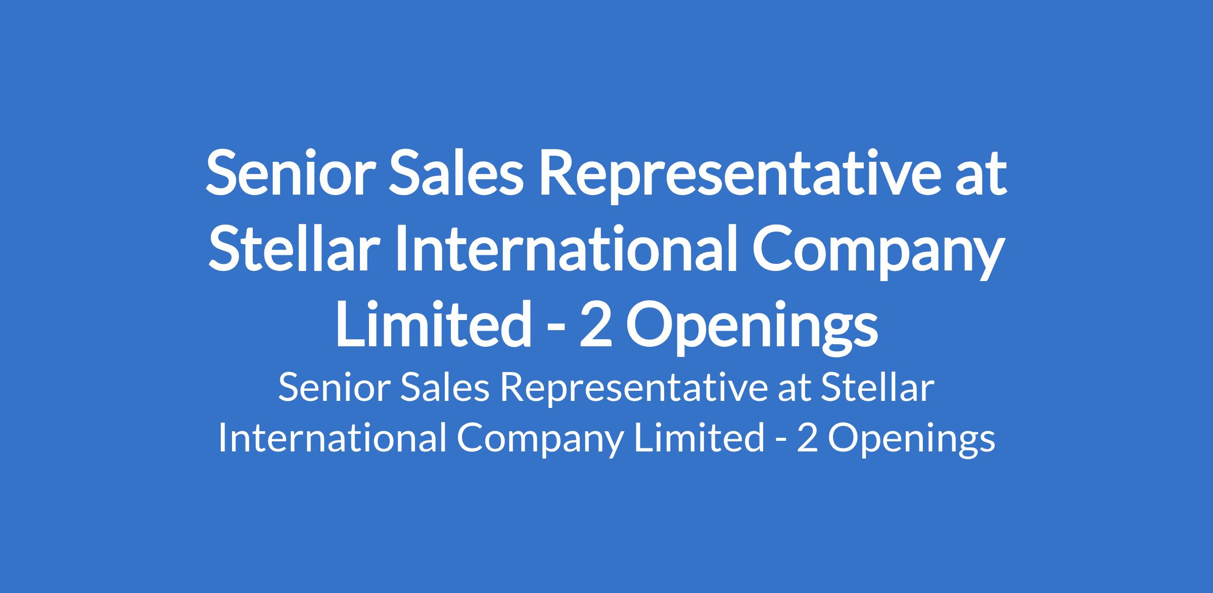 Stellar International Company Limited is recruiting to fill the position of: Senior Sales Representative. The position is located in Cotonou, Sakete - Benin Republic and Idirokg / Bagagry, Lagos State. Interested candidates should possess relevant qualifications with experience.